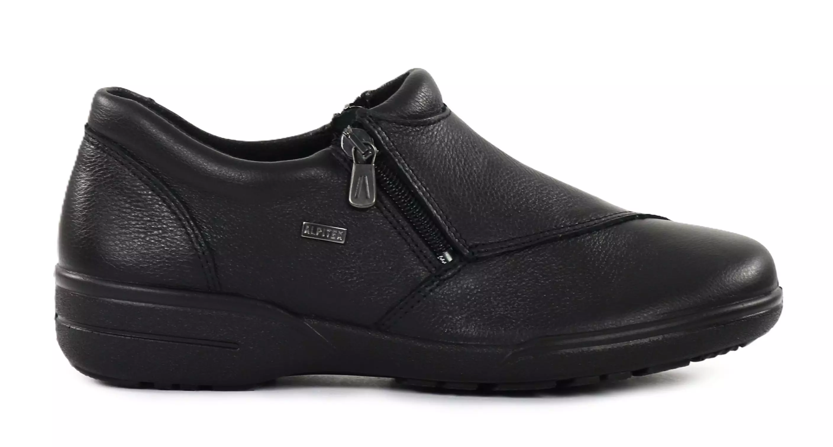 Bekväma och högkvalitativa Alpina-skor, tillverkade av äkta läder. Två dragkedjor gör dem enkla att ta på och den flexibla strukturen säkerställer bekväm användning. Alpitex-beläggning ger extra skydd mot regn, snö och kyla - ett utmärkt val för växlande väderförhållanden.