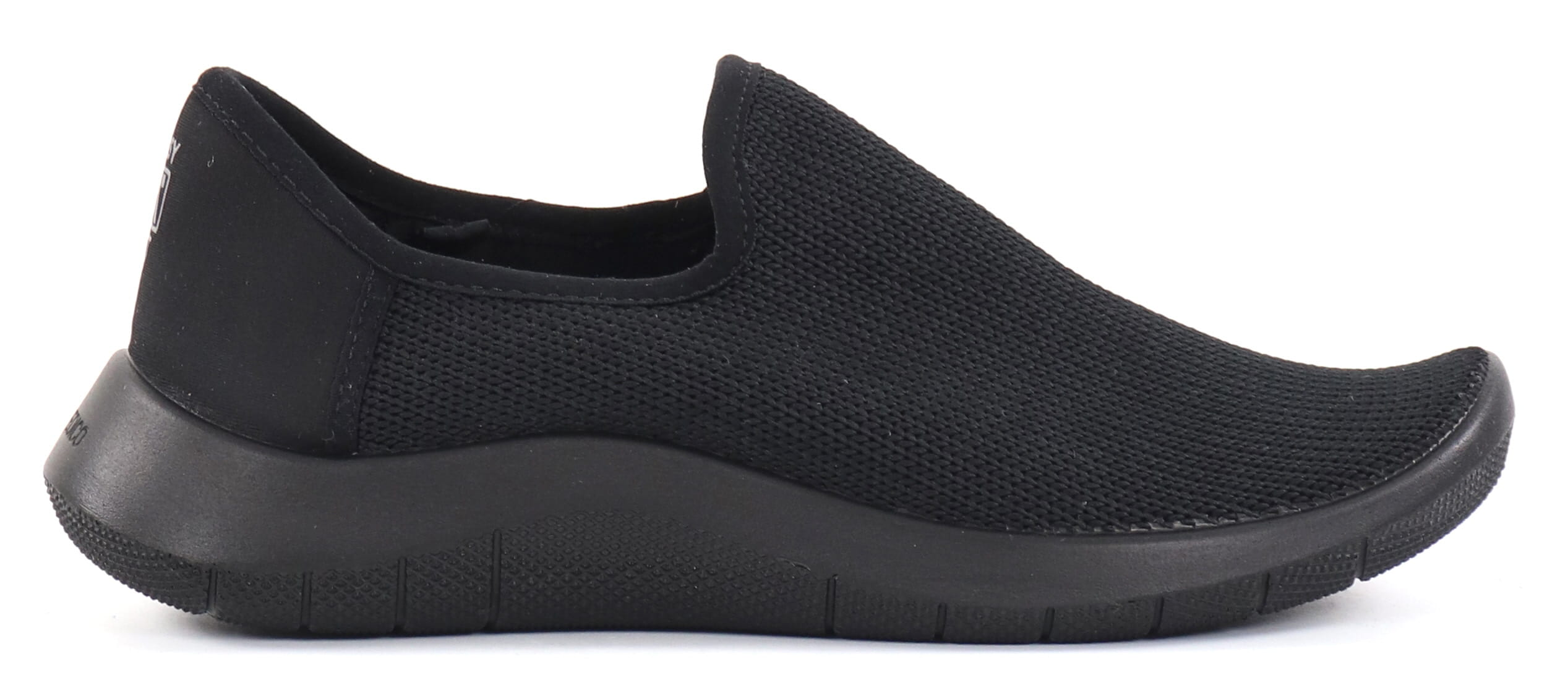 Lätta, svarta promenadskor i textil. Maximal komfort för hela dagen, passar både arbete och fritid. ANTIVIRAL yttersulan eliminerar 99% av virus och bakterier!