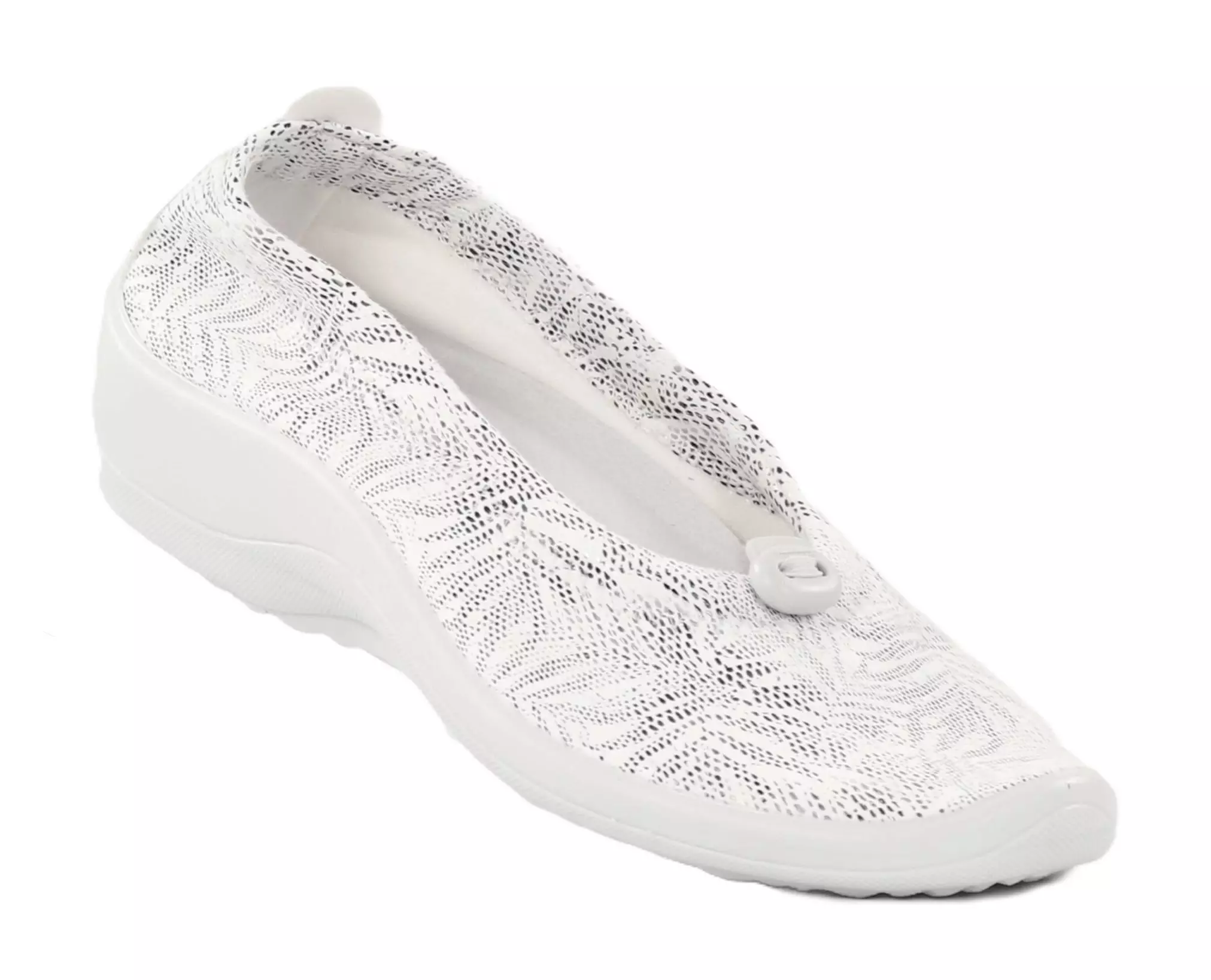 Riktigt mjuka, bekväma och lätta Arcopedico ballerinor/promenadskor med en snygg lövmönstrad ovandel. Ovandeln är gjord av elastiskt Lytech-material, vilket gör skon anpassningsbar till många typer av fötter.
