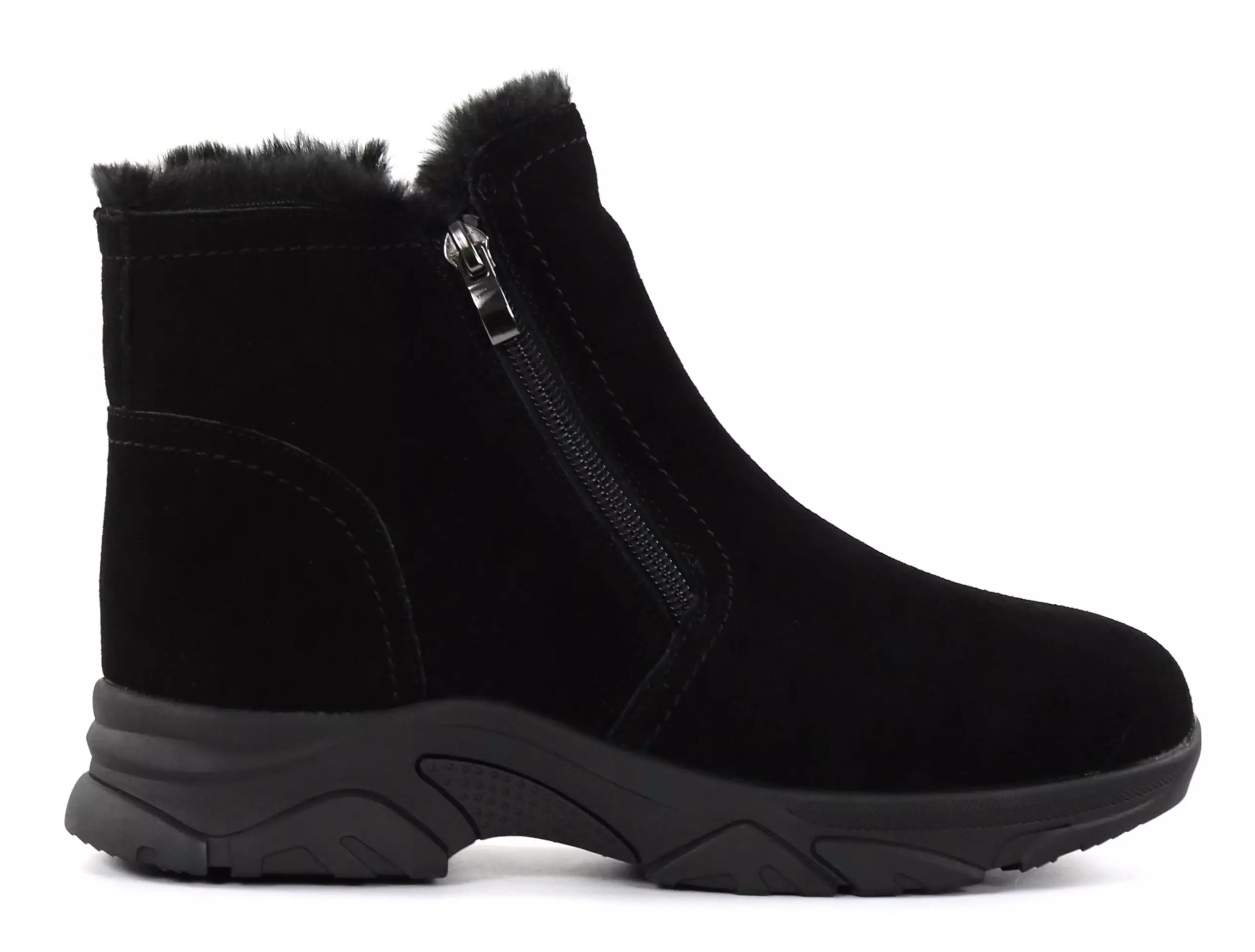 Vattentäta ankelboots i läder med varmt konstgjord pälsfoder. Dragkedjor på båda sidor garanterar lätt att ta på skon!