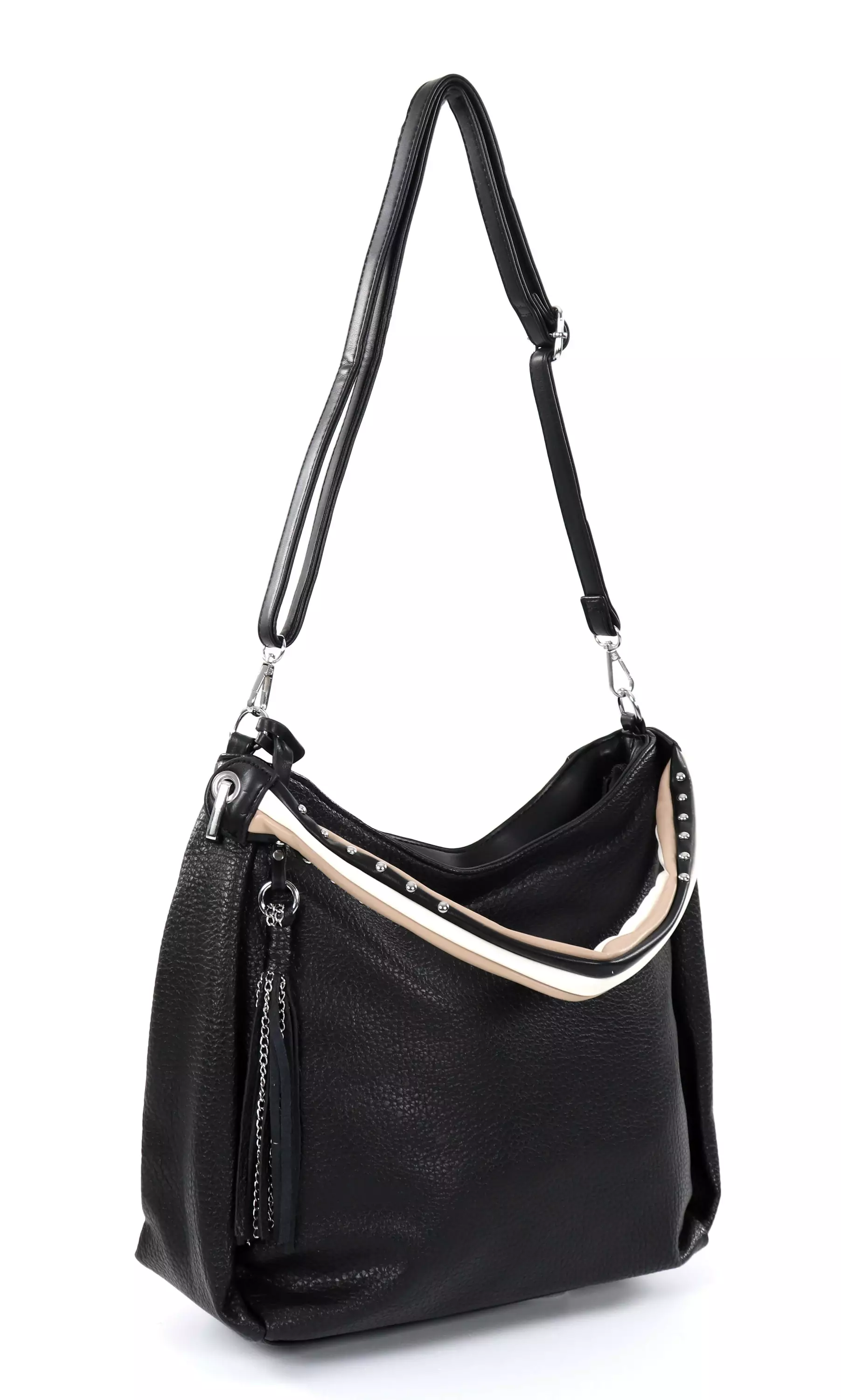 Denna väska kombinerar vardaglig praktiskhet med ett elegant utseende. Den avtagbara och justerbara axelremmen erbjuder mångsidighet för olika användningsområden, och det robusta bärhandtaget gör att du kan bära väskan på armen. Väskdekorationen på framsidan ger väskan en stilig touch. Den lätta och rymliga väskan är perfekt för vardagsbruk såväl som för stadsresor.