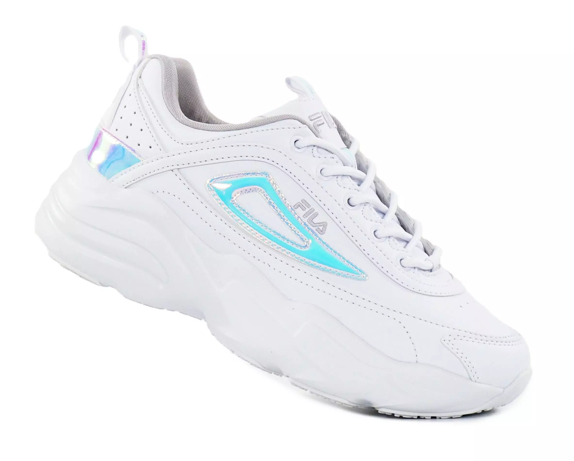 Trendiga Fila Skye sneakers för vardag och fritid. Iögonfallande holografiska detaljer och en lätt tjocka design ger en trendig touch till din outfit.