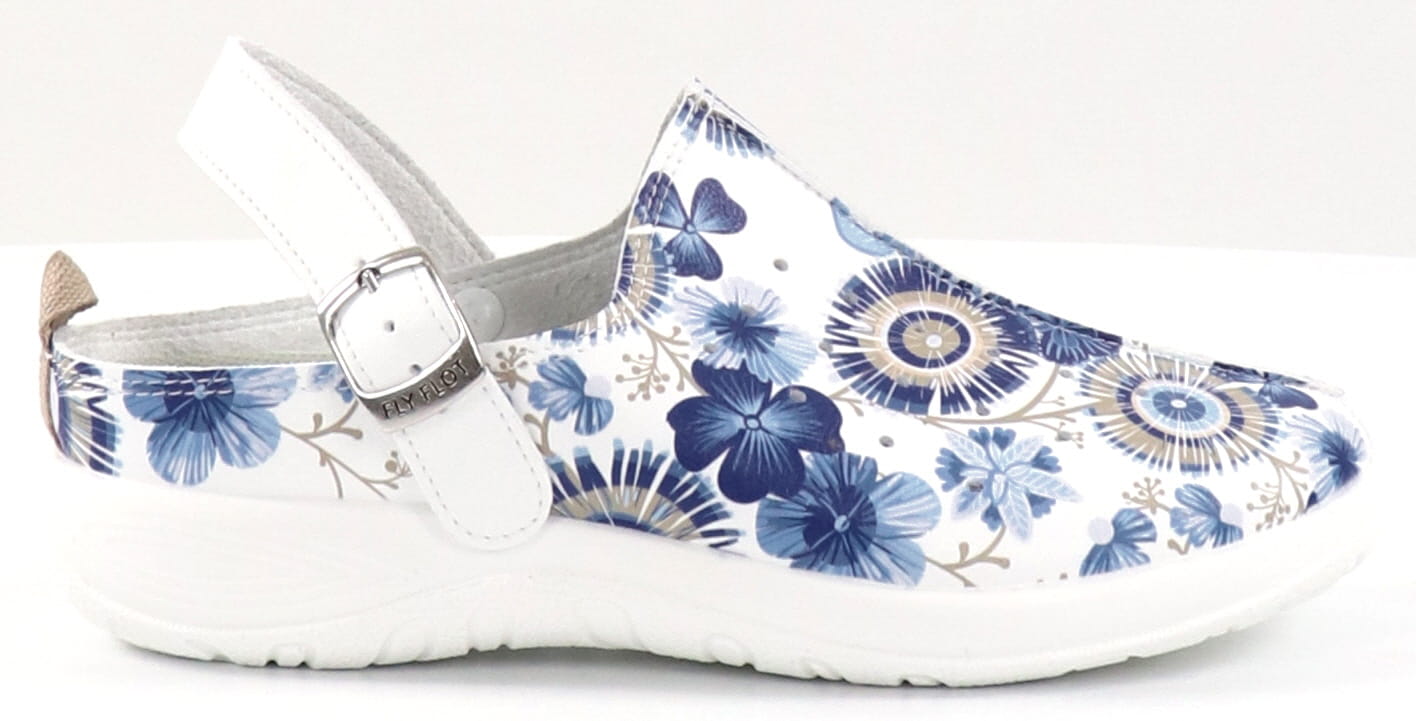 Arbetsskor av mjukt, antibakteriellt material. Anatomiskt formad innersula och Anti-Slip yttersula.