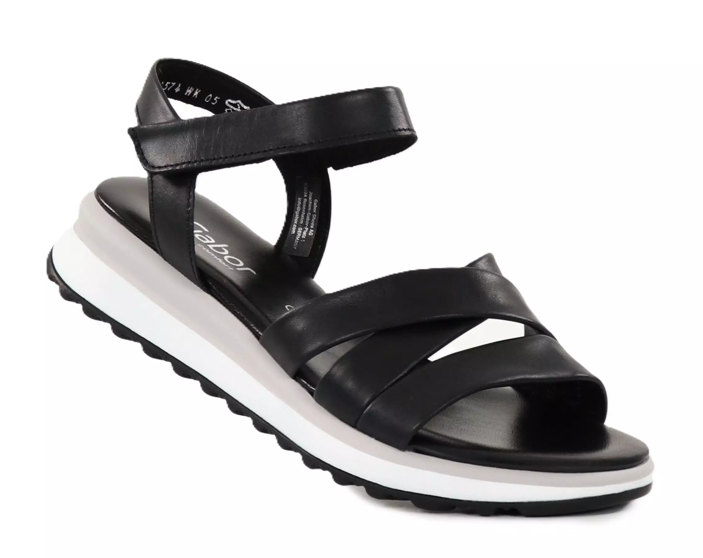 Högkvalitativa Gabor-sandaler i äkta läder med kardborrejusterbar ankelrem. Tack vare den vadderade sulan är skorna riktigt sköna att ha på sig!