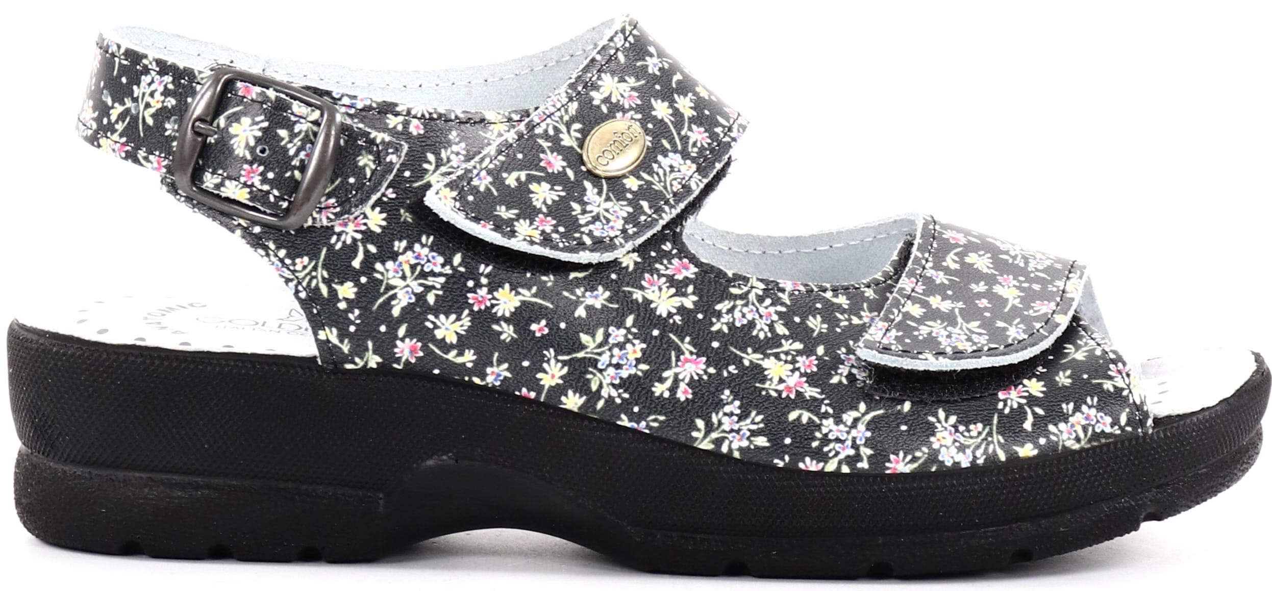 Lädersandaler med blommönster och 3 justerbara remmar.