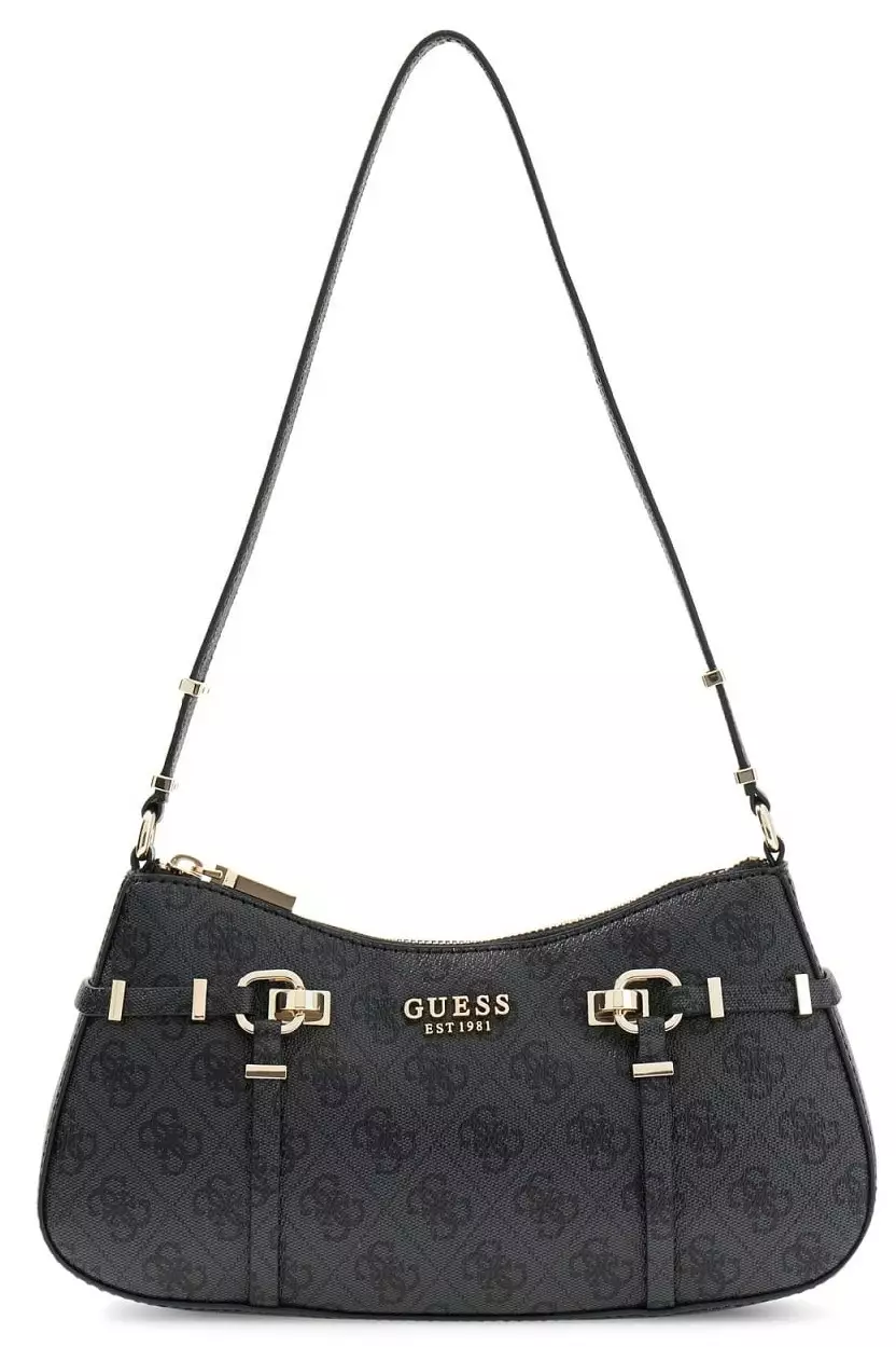 En klassisk liten väska med Guess-mönster.