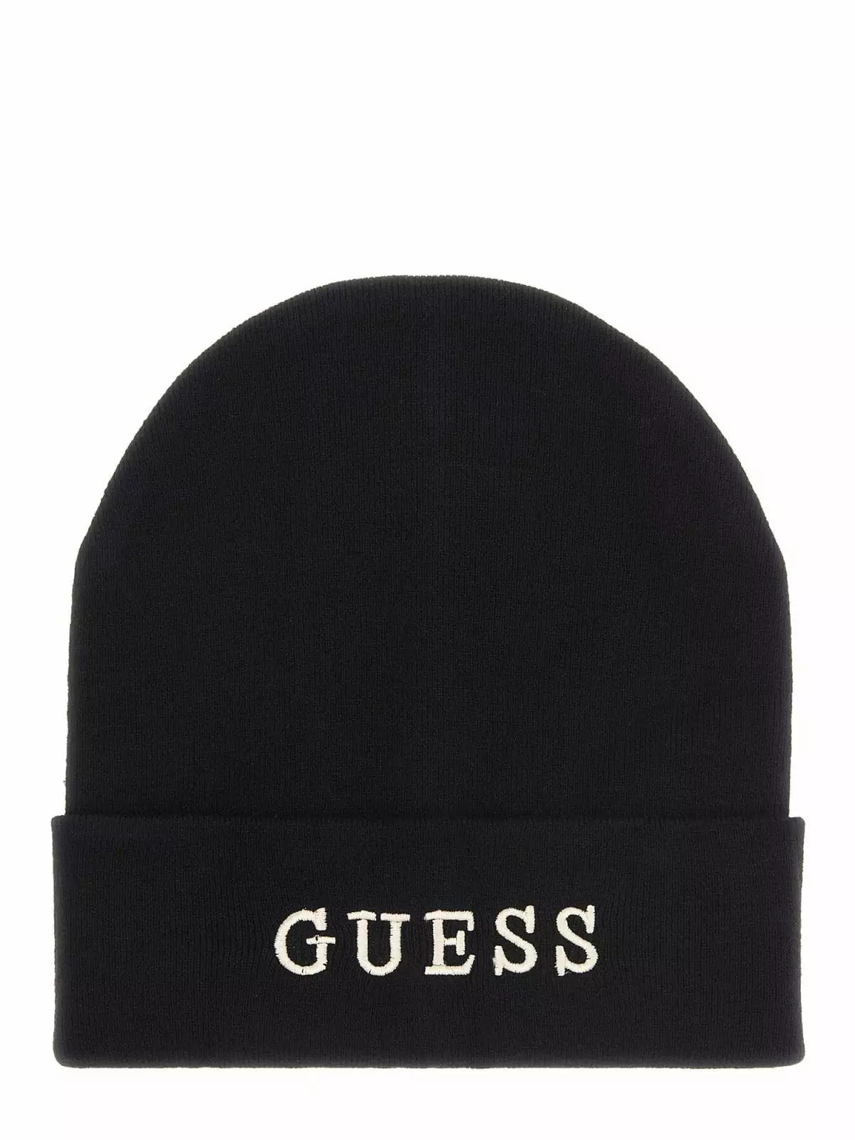 Stretchig stickad mössa. Broderad Guess-logga på framsidan.
