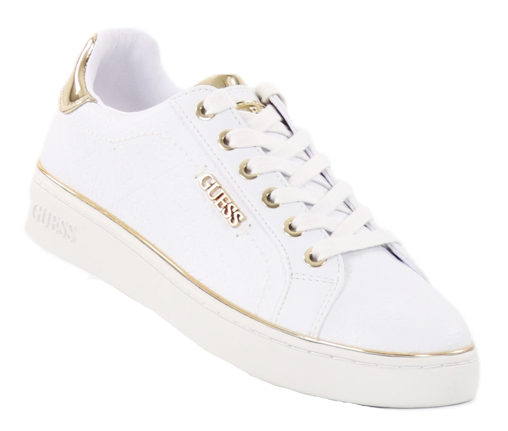 Snygga sneakers från Guess med logomönstrad ovandel och gyllene detaljer.