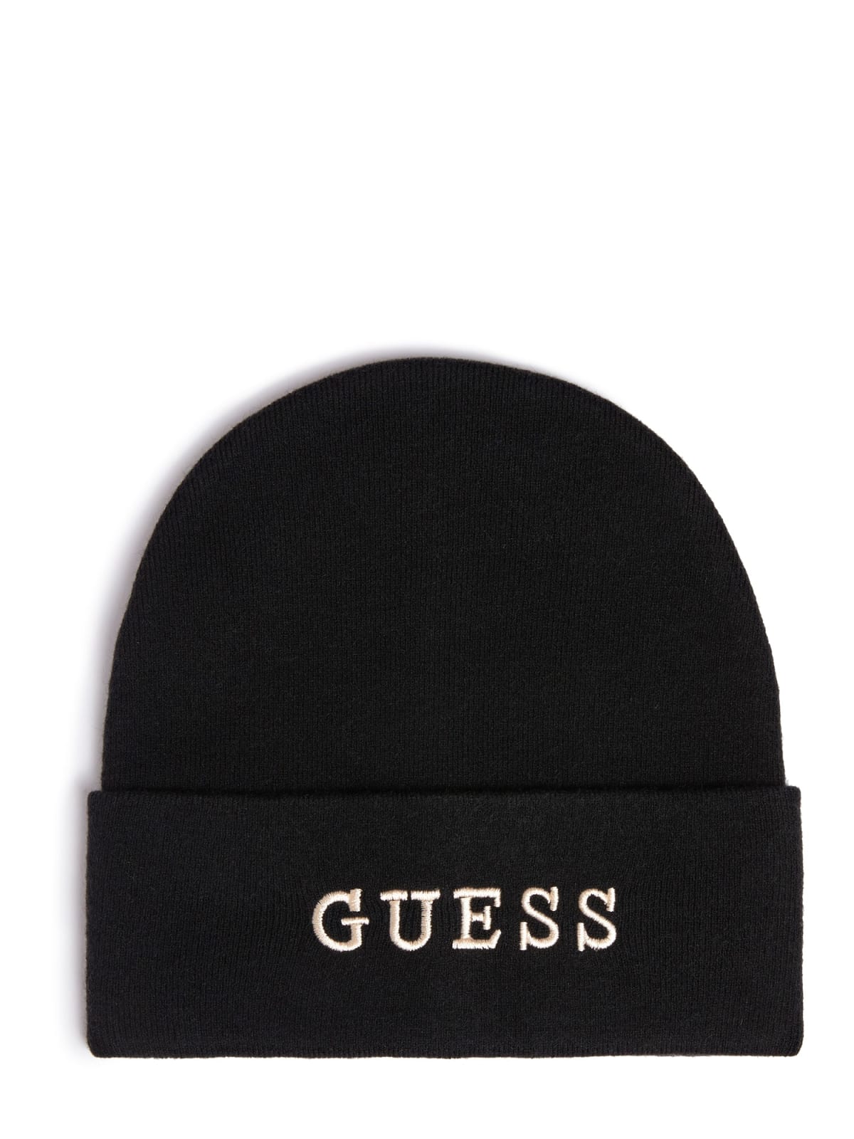 Stretchig stickad mössa. Broderad Guess-logotyp