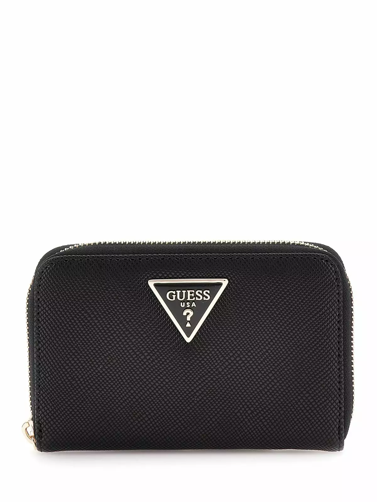 Svart Guess plånbok med ficka med dragkedja och flera kortplatser.