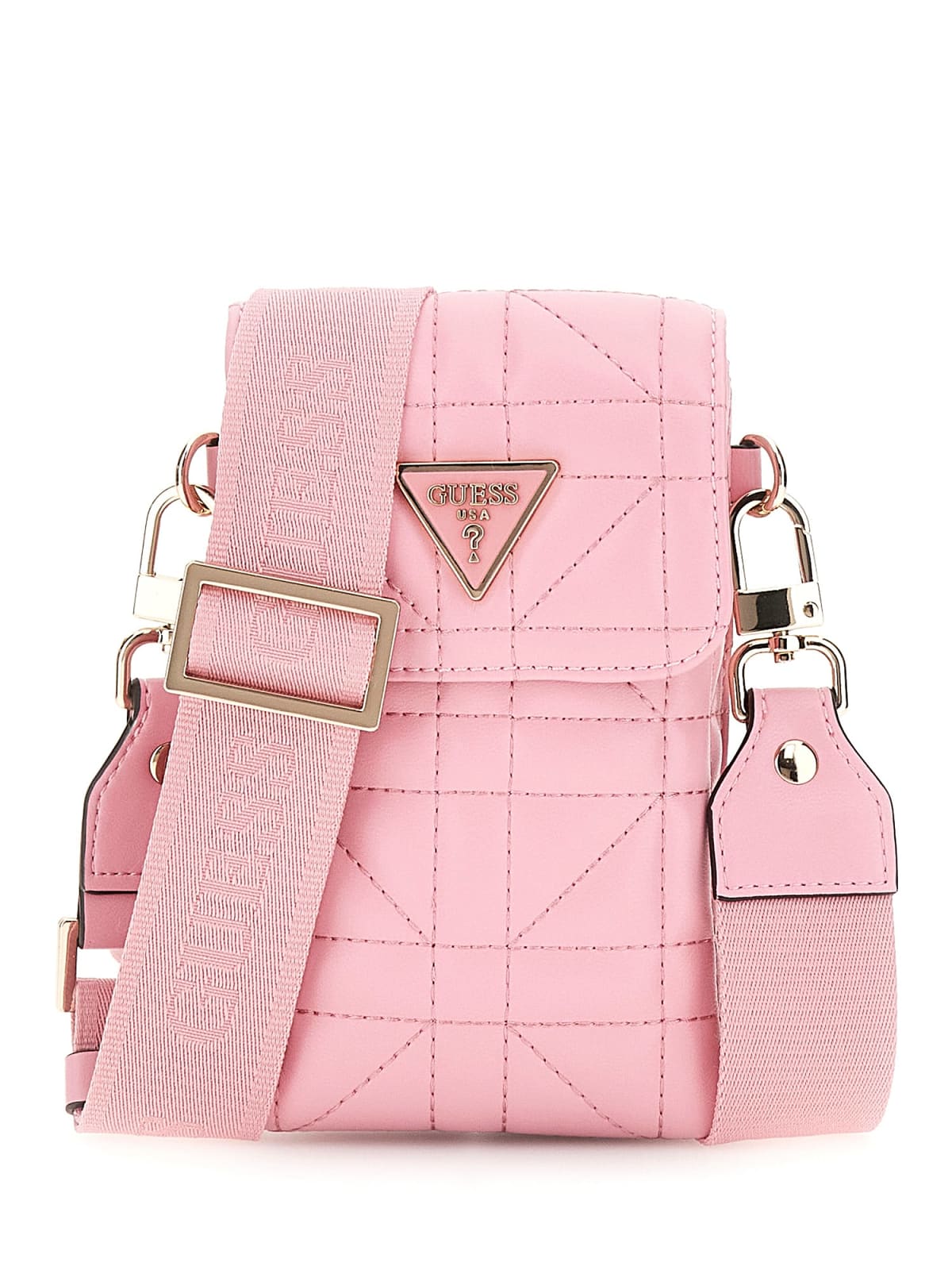 Rosa telefonväska från Guess med dekorativa sömmar.