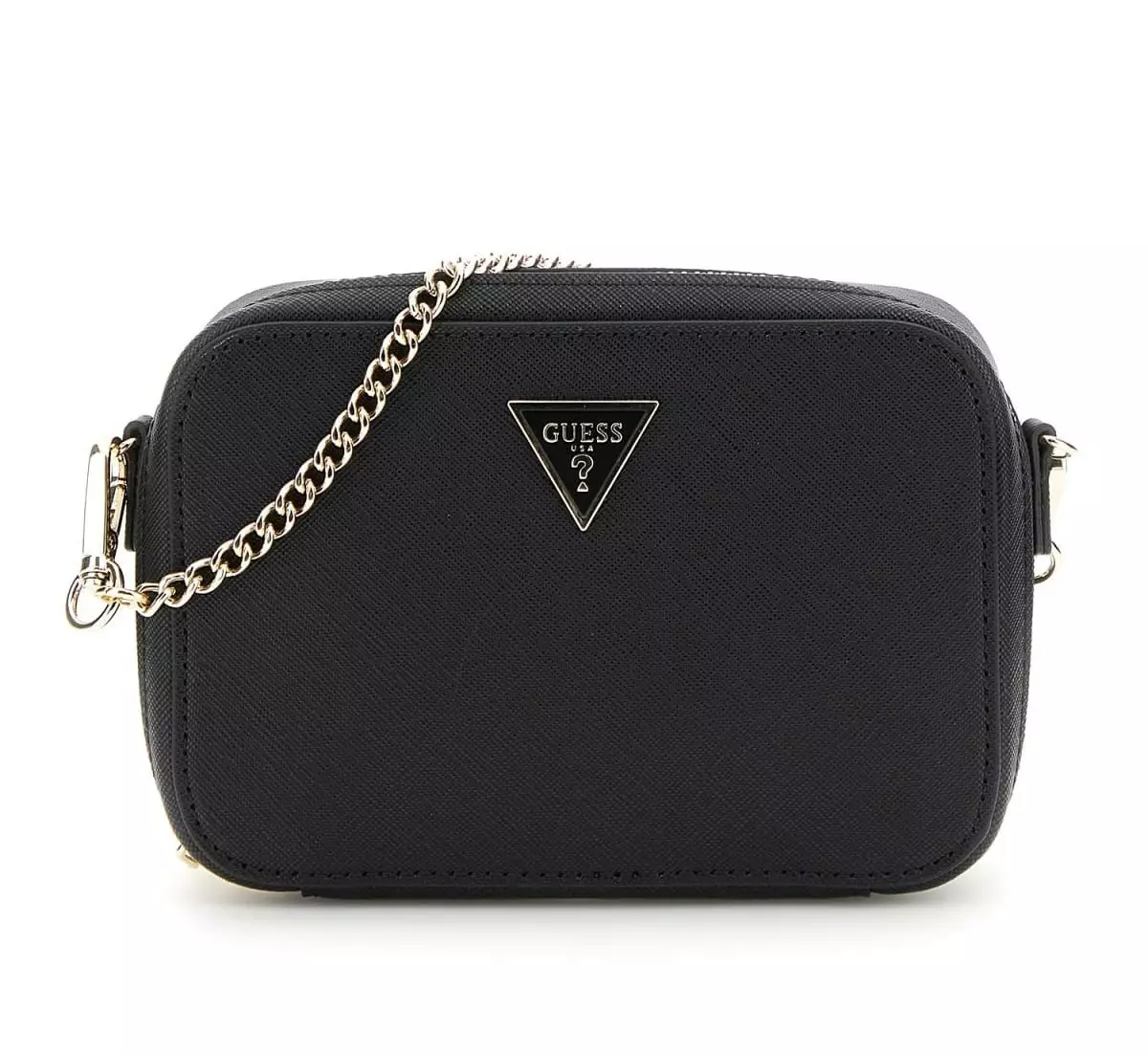 En snygg väska från Guess, med en avtagbar kort guldfärgad kedjerem. En praktisk ögla på baksidan av väskan, som gör att du enkelt kan omvandla den till en bältesväska genom att trä bältet genom öglan. Ett mångsidigt och imponerande val för vardagslivet eller kvällsutflykter.