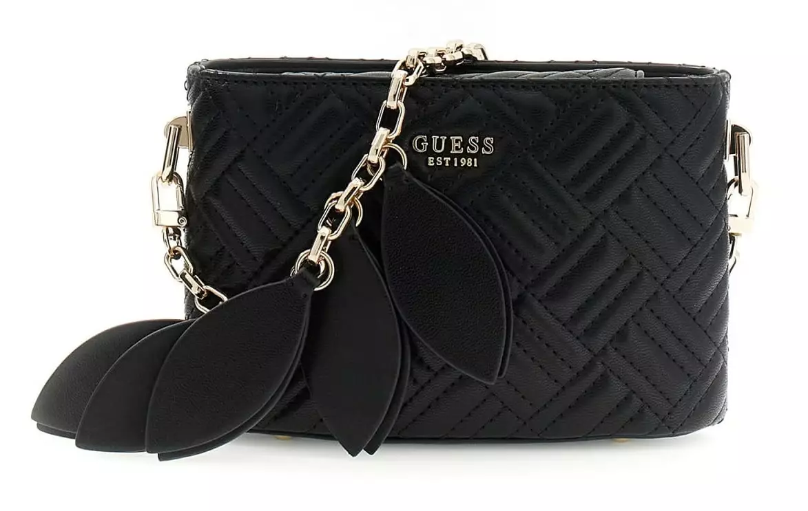 Guess lilla väska är full av vackra detaljer! Det sydda materialet och kedjeremmens vackra fjädermönster kompletterar stilen.