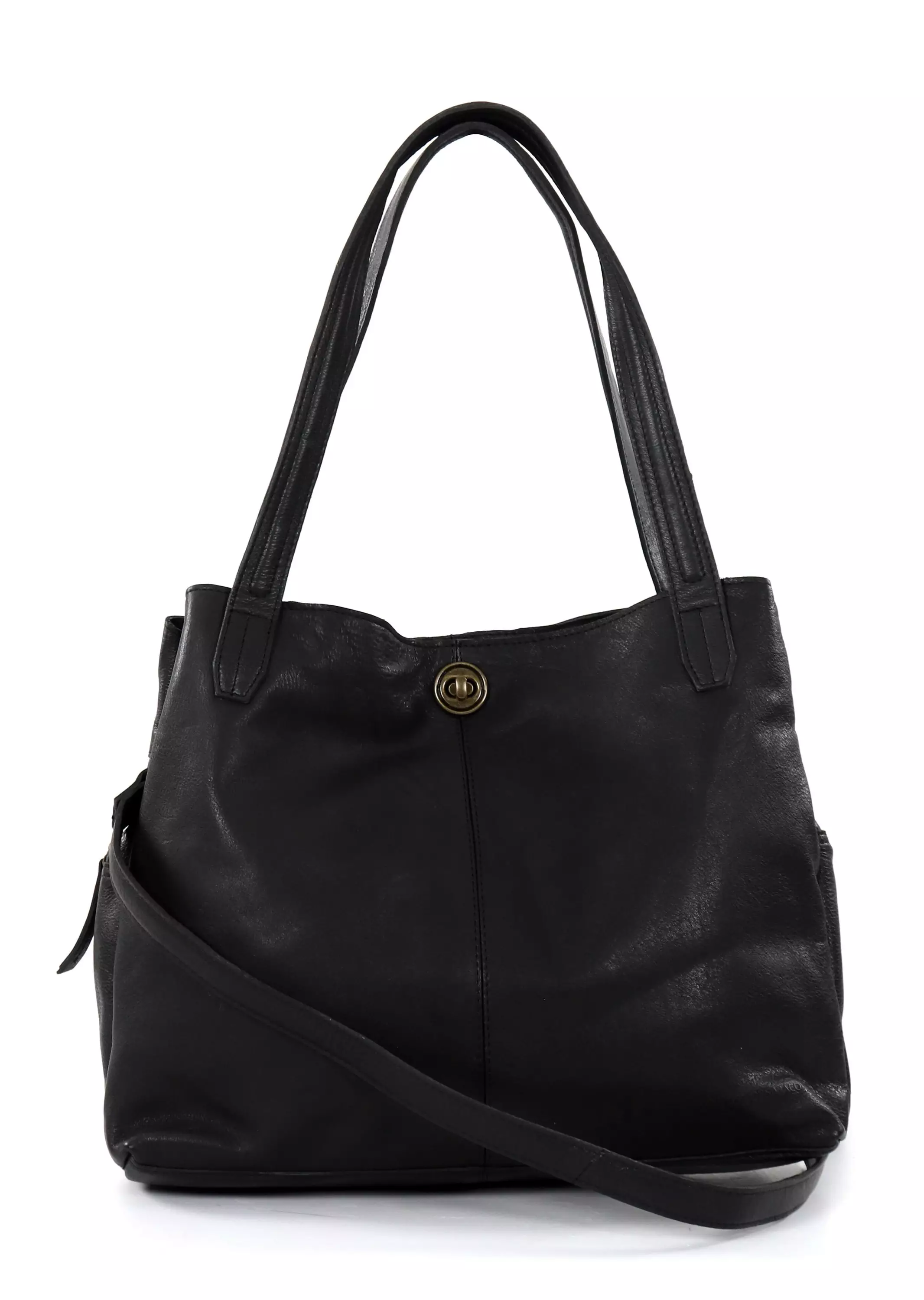 En rymlig axelväska av mjukt läder. Levereras med avtagbar och justerbar axelrem.