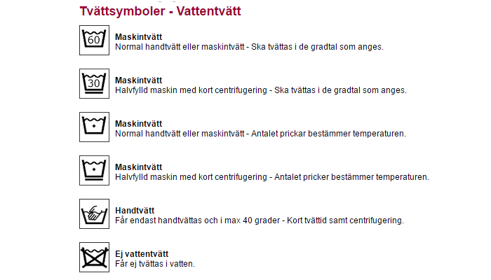 - Följ alltid tvätt instruktioner, så att kläderna ska hållas i gott skick så länge som möjligt