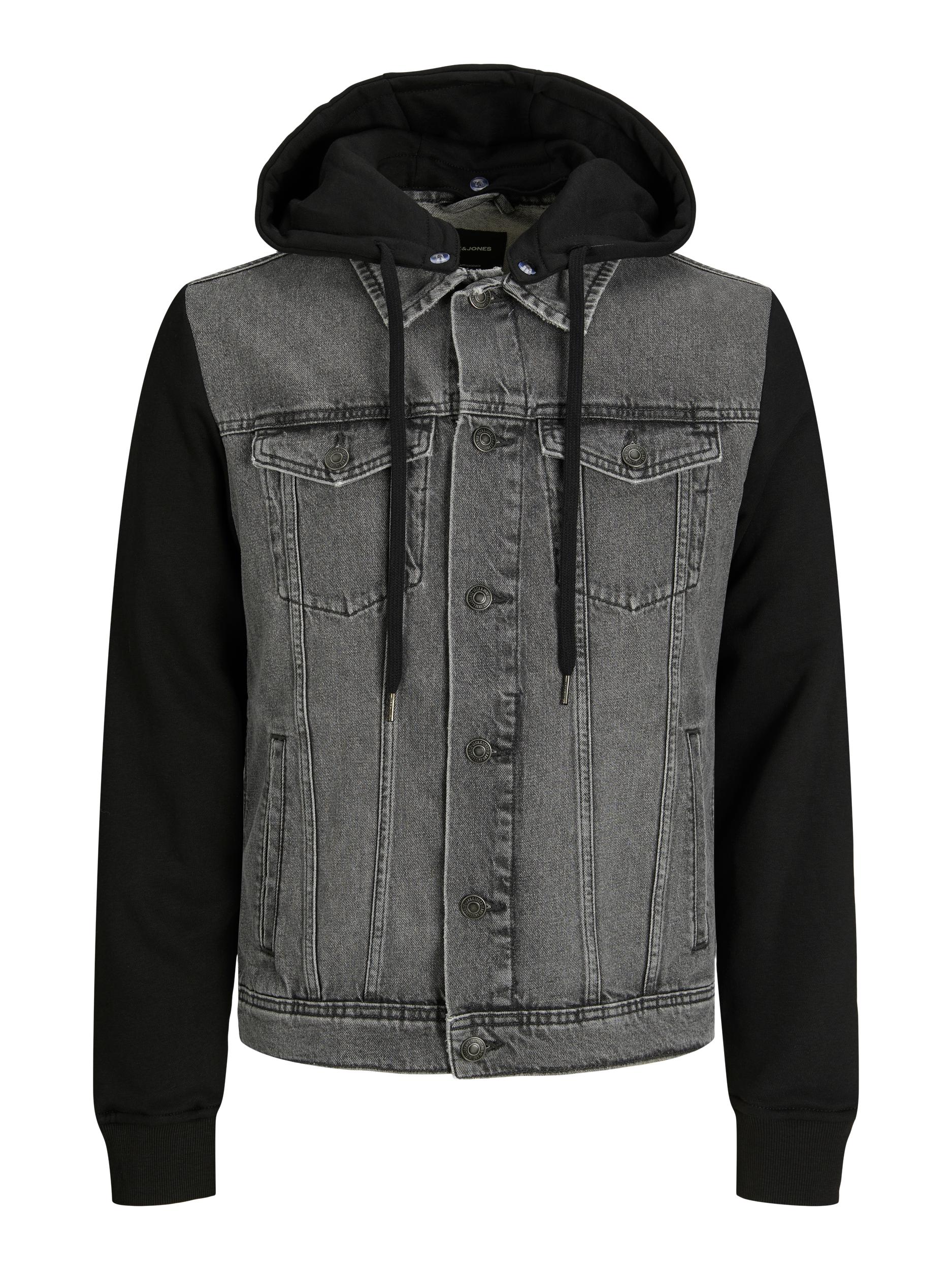 Denimjacka i bomull med sweatshirtärmar och huva!