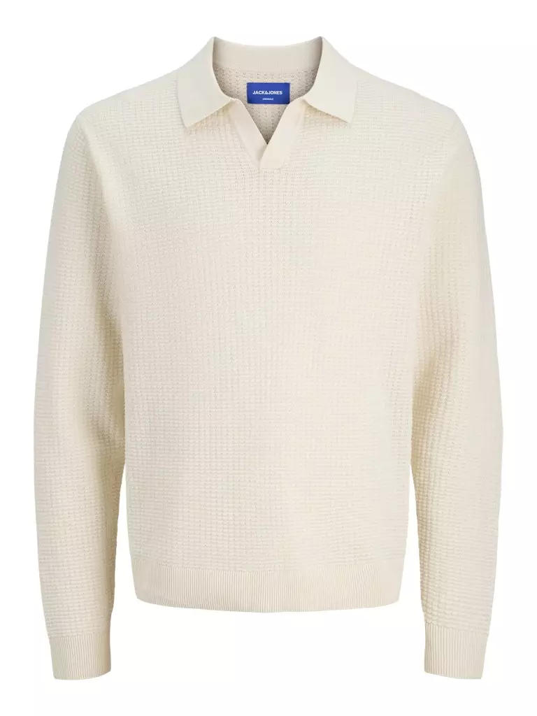Herrkragetröja i bomull tillverkad av texturerad stickning.