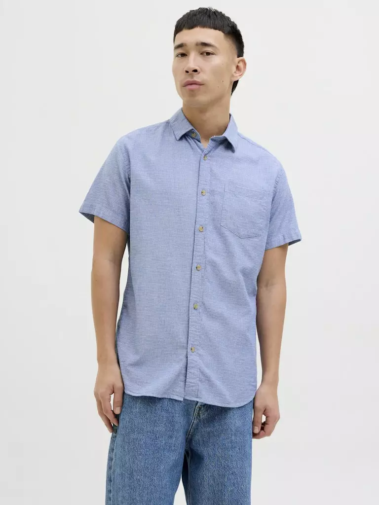 Jack&Jones kortärmad herrskjorta fänrik blå