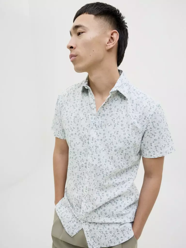 En kortärmad skjorta av bomull och linne är perfekt för varma sommardagar.