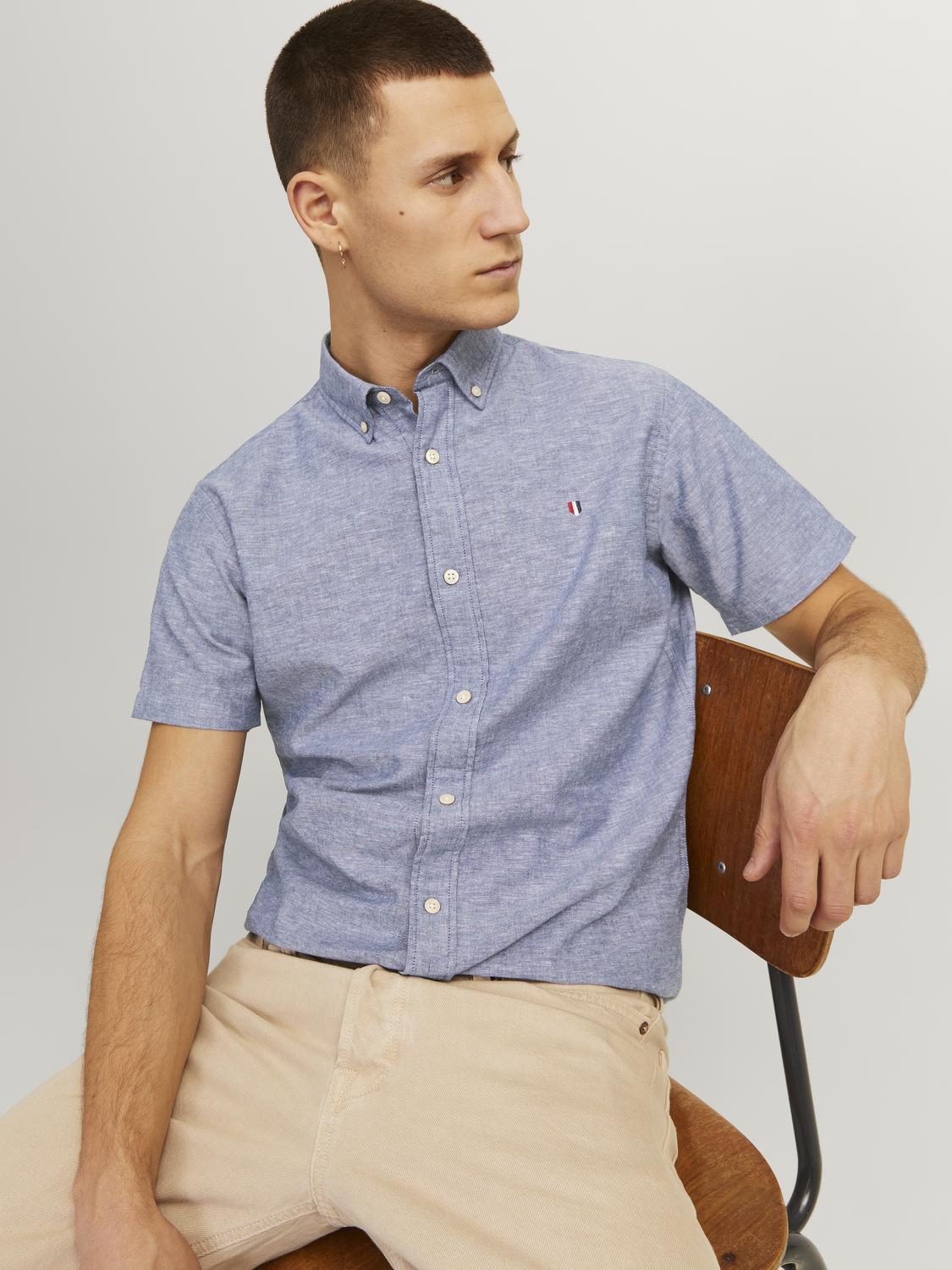 Kortärmad skjorta gjord av en blandning av bomull och linne.