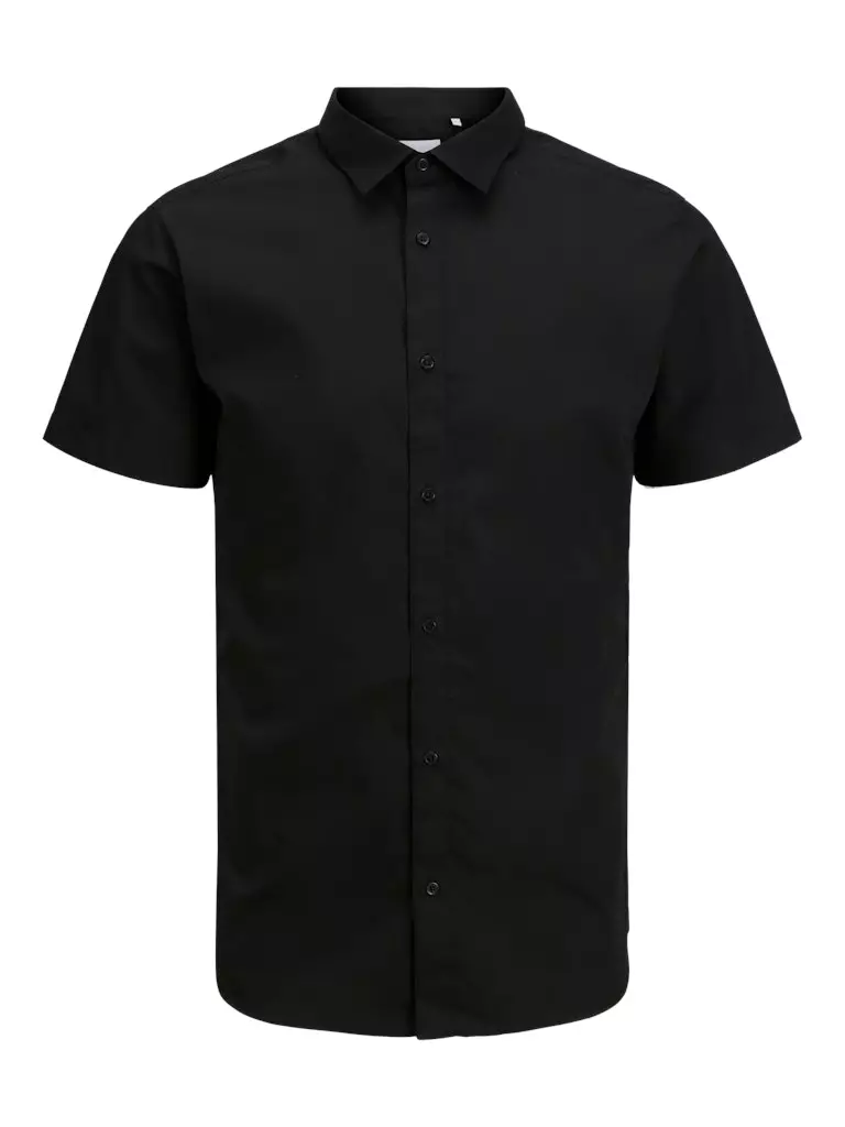 Denna kortärmade skjorta med slim fit är tillverkad av en bekväm bomullsblandning som andas och sitter bra. Den klassiska skärningen ger stil till både fester och vardagsliv!