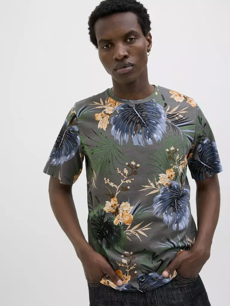 En bomullsmönstrad T-shirt som är lätt att kombinera med olika byxor och shorts.