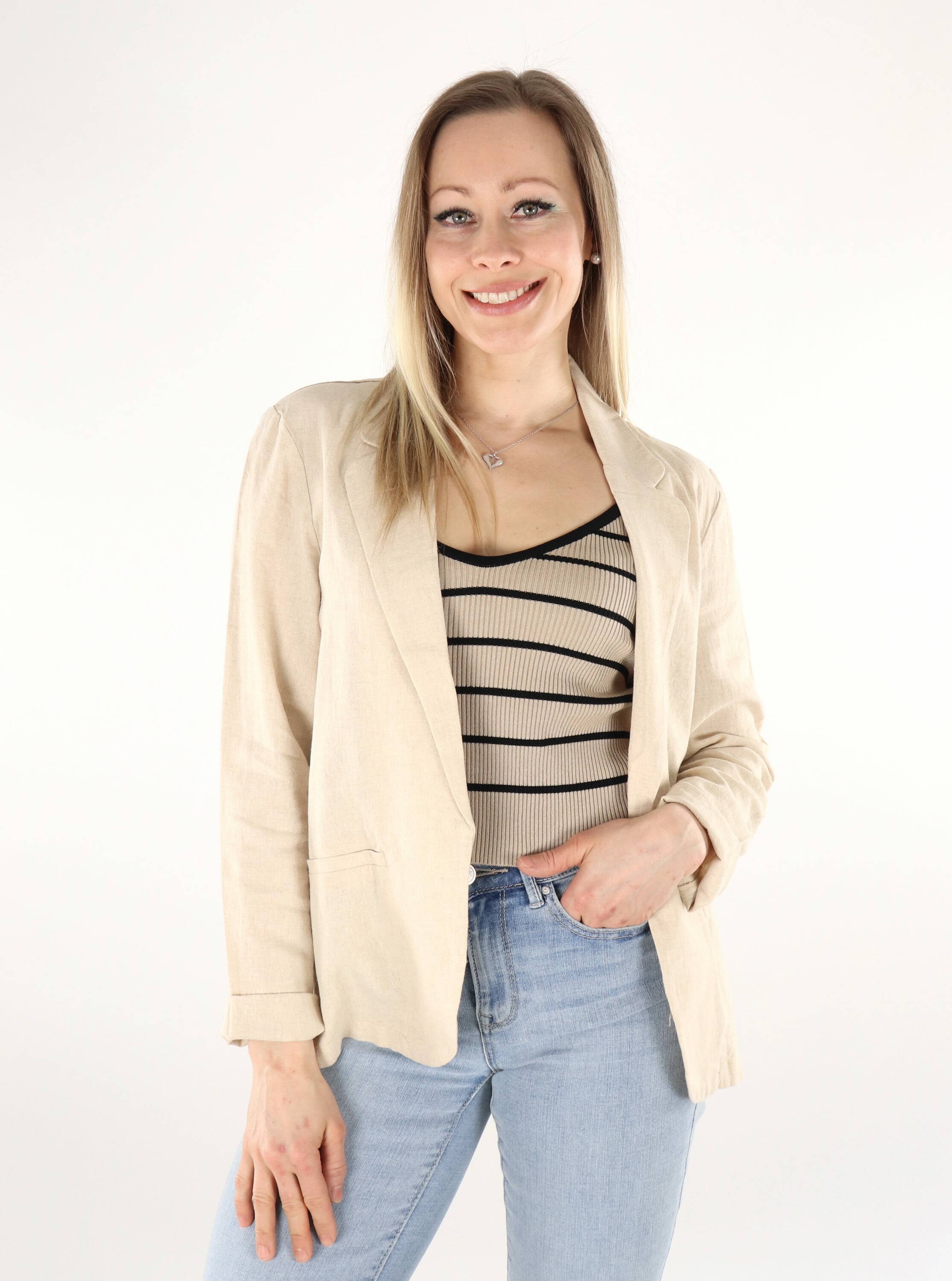 Kavaj tillverkad av en blandning av viskoslinne som andas.