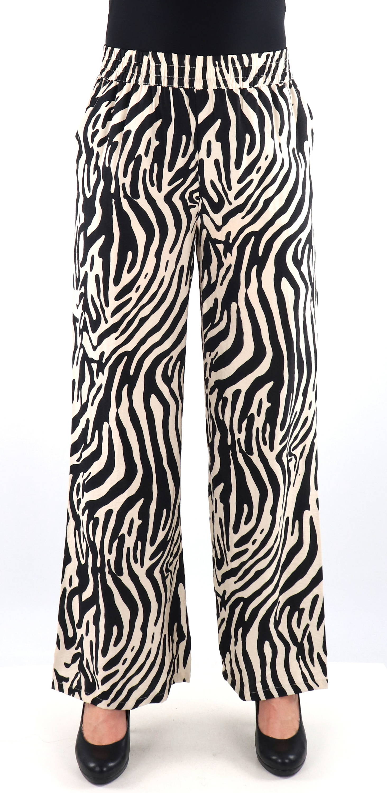 Byxor med vida ben med zebramönster.
