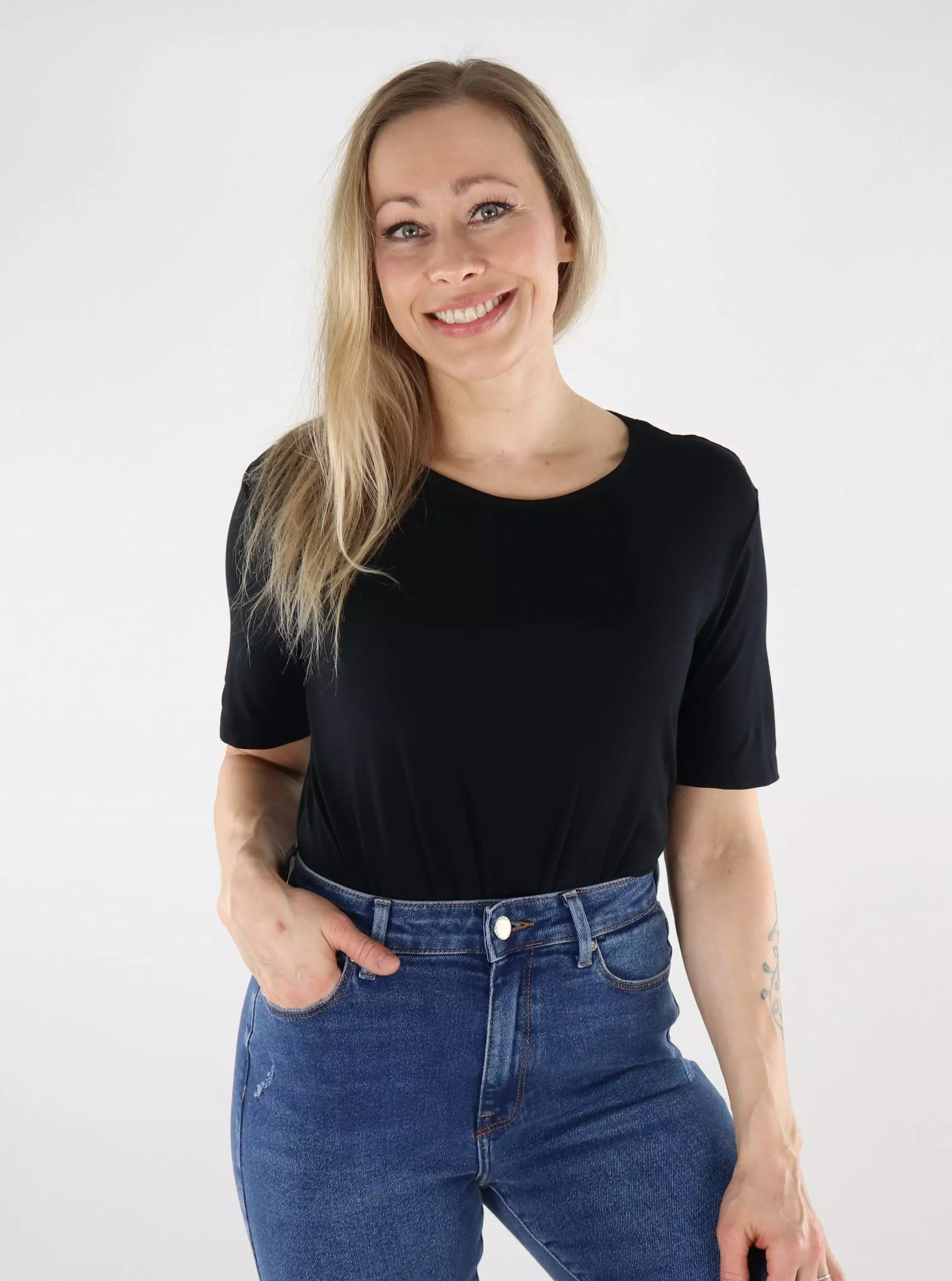 Denna klassiska t-shirt från JDY är tillverkad av ett behagligt mjukt och stretchigt material som sitter avslappnat och bekvämt. Den tidlösa designen och O-ringningen gör den till det perfekta vardagsplagget!