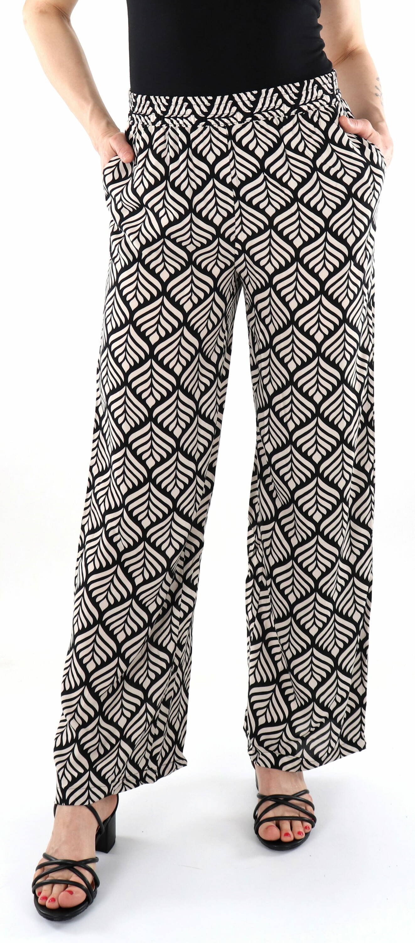 Byxor med vida ben med stilrent mönster. Lätt och andningsbar viskos.
