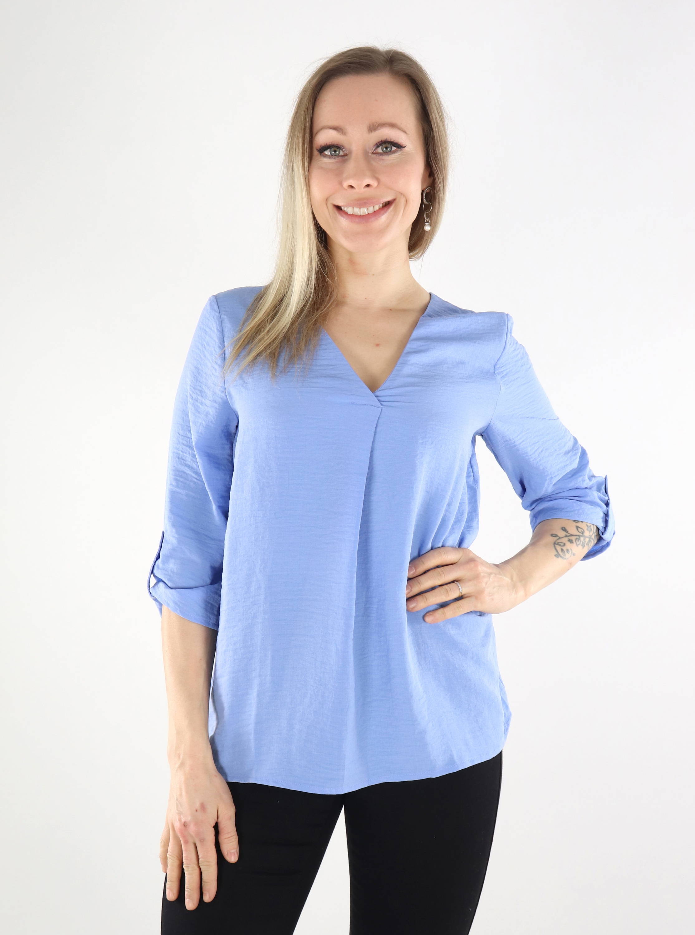En lätt, vackert flytande skjorta med V-ringning och dekorativt veck.