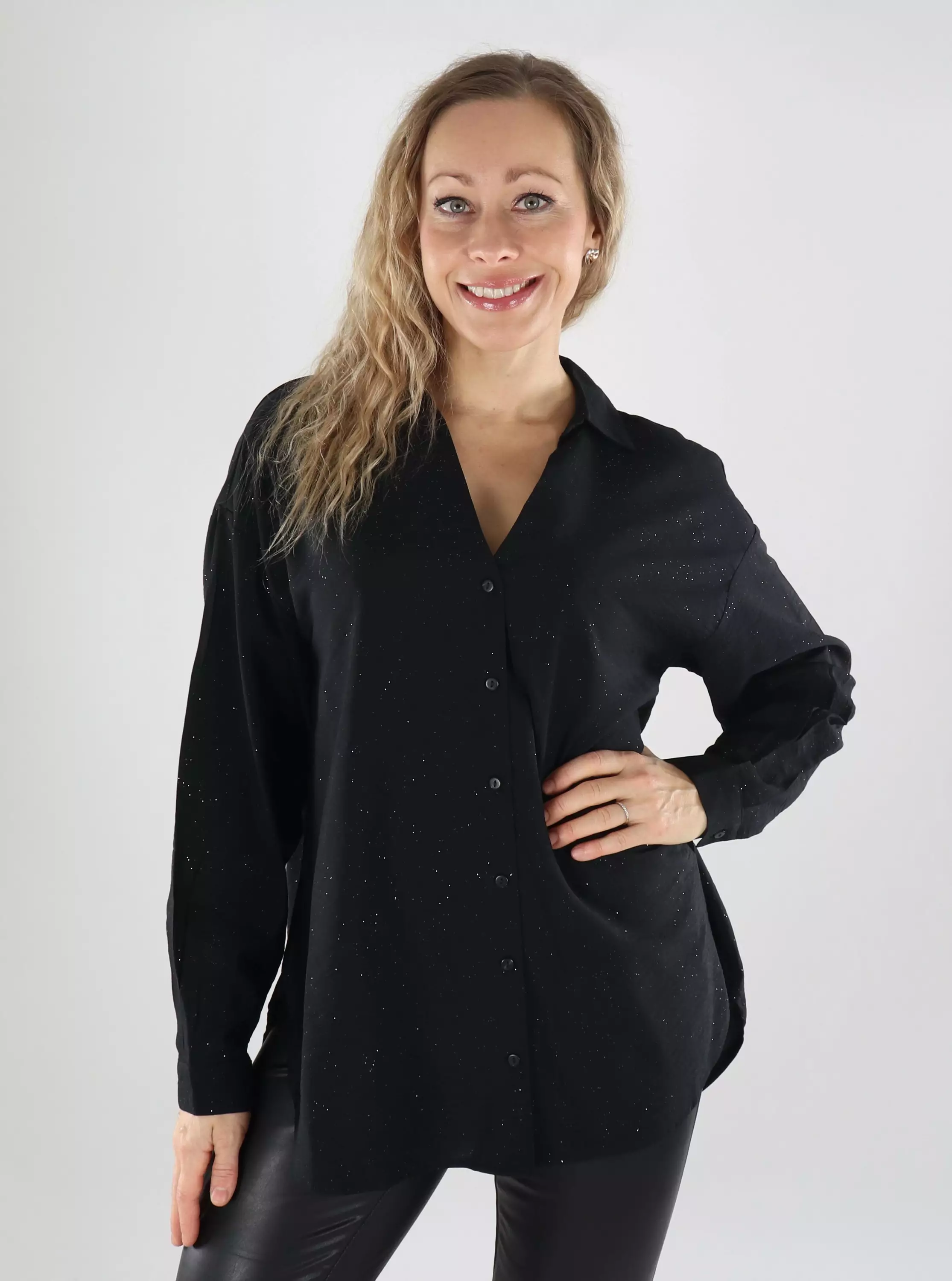 En snygg och glittrig viskosskjorta ger enkelt en touch av glamour till din outfit! Den längre modellen fungerar både som en klassisk skjorta och en mer avslappnad tunika. Ett mångsidigt val för vardag och festligare stunder.