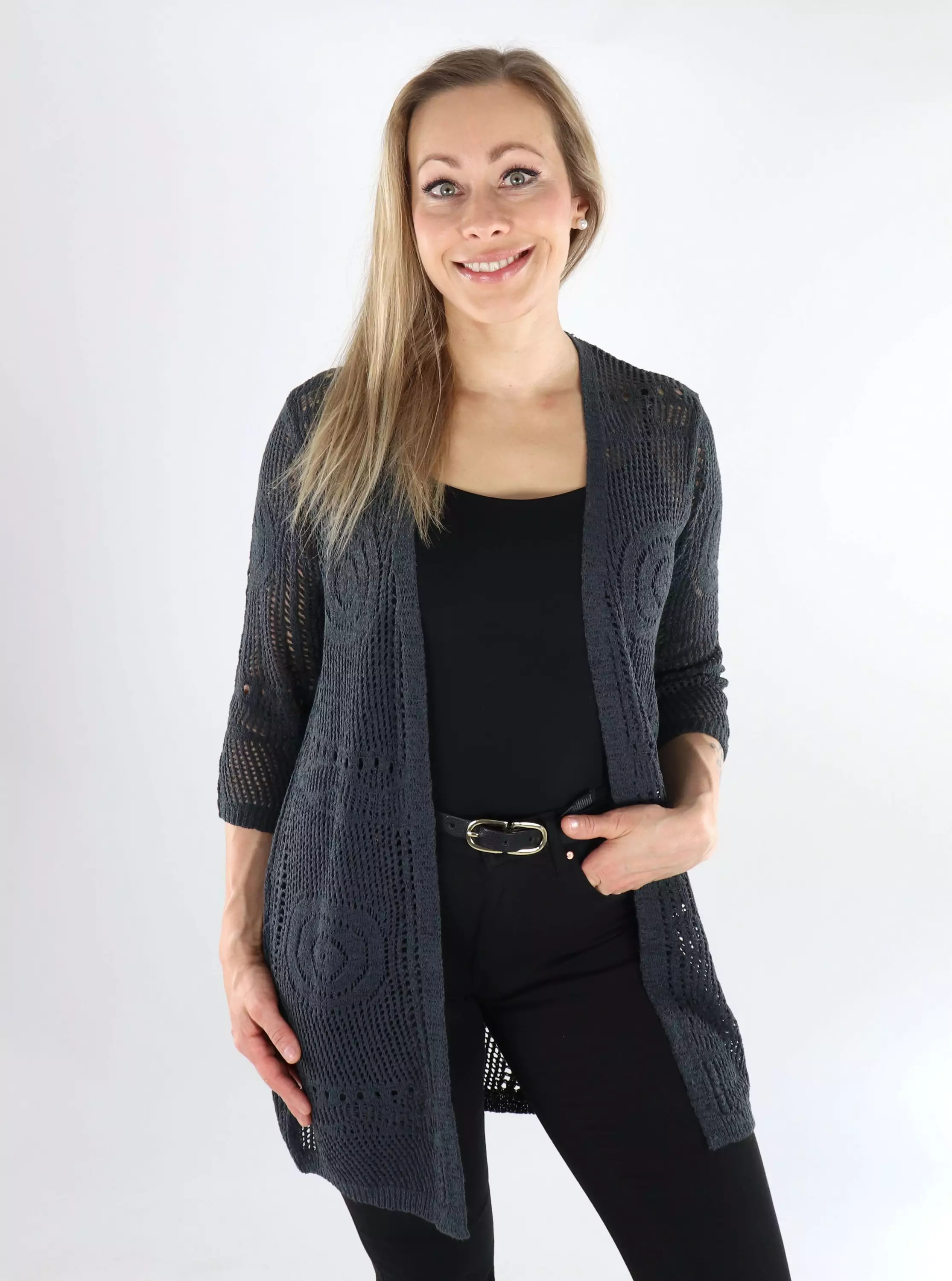 JDY:s lätta, spetsmönstrade stickade kimono ger en touch av bohemisk stil till din outfit! En avslappnad modell som fungerar utmärkt till både vardag och fritid.