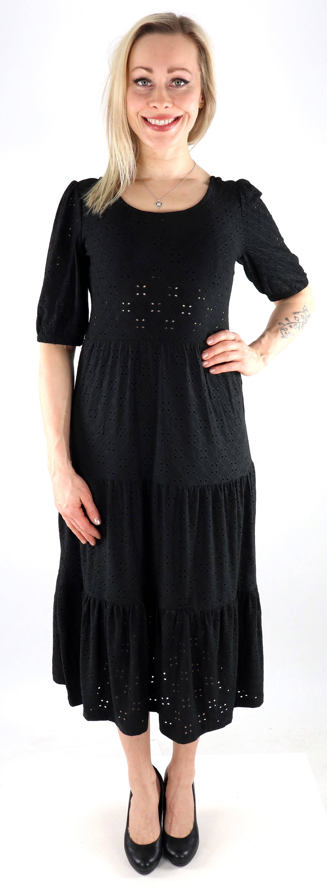 Snygg midiklänning med hålmönster.