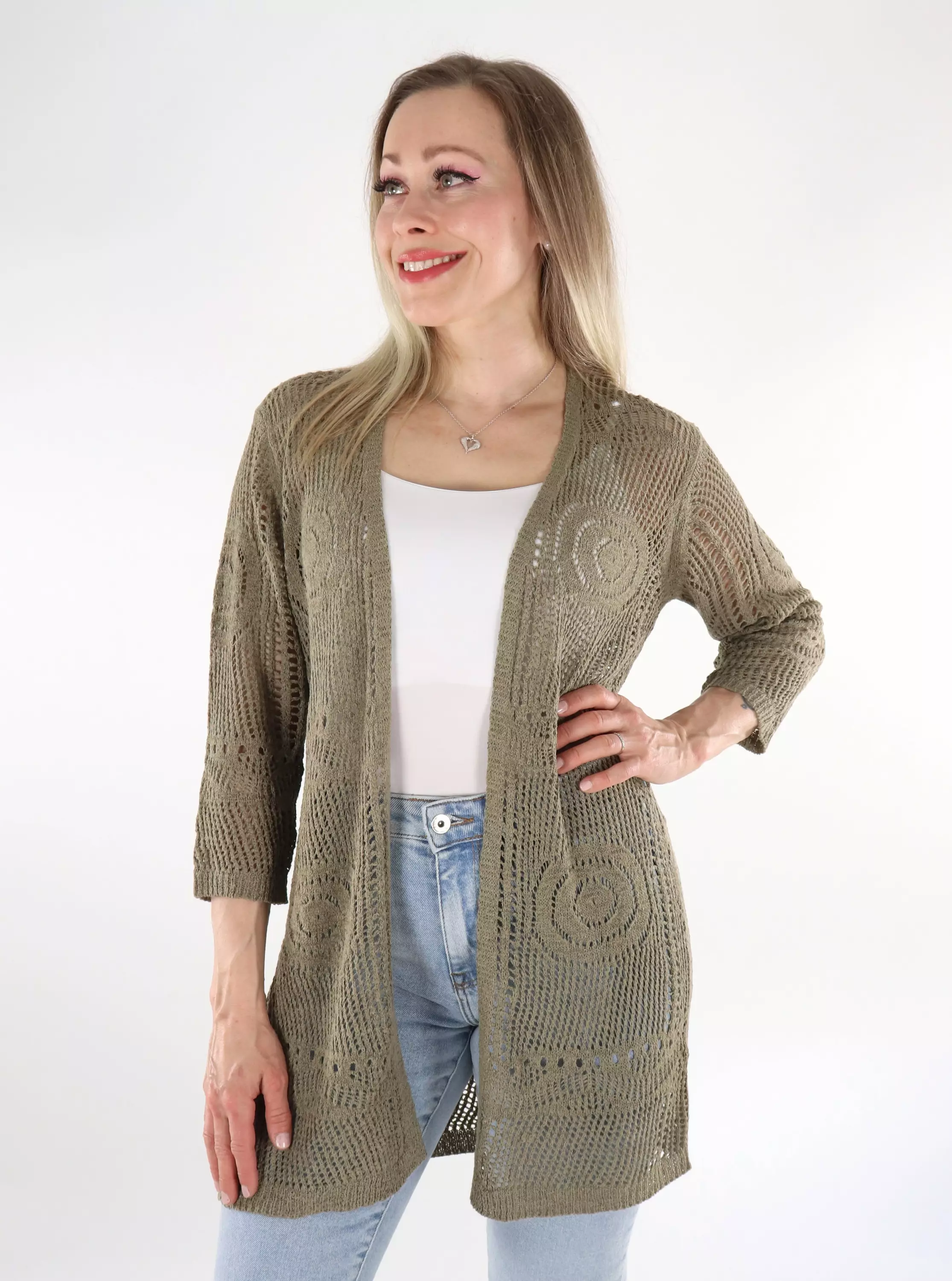 Spetsmönstrad kofta i mjuk och lätt stickad.