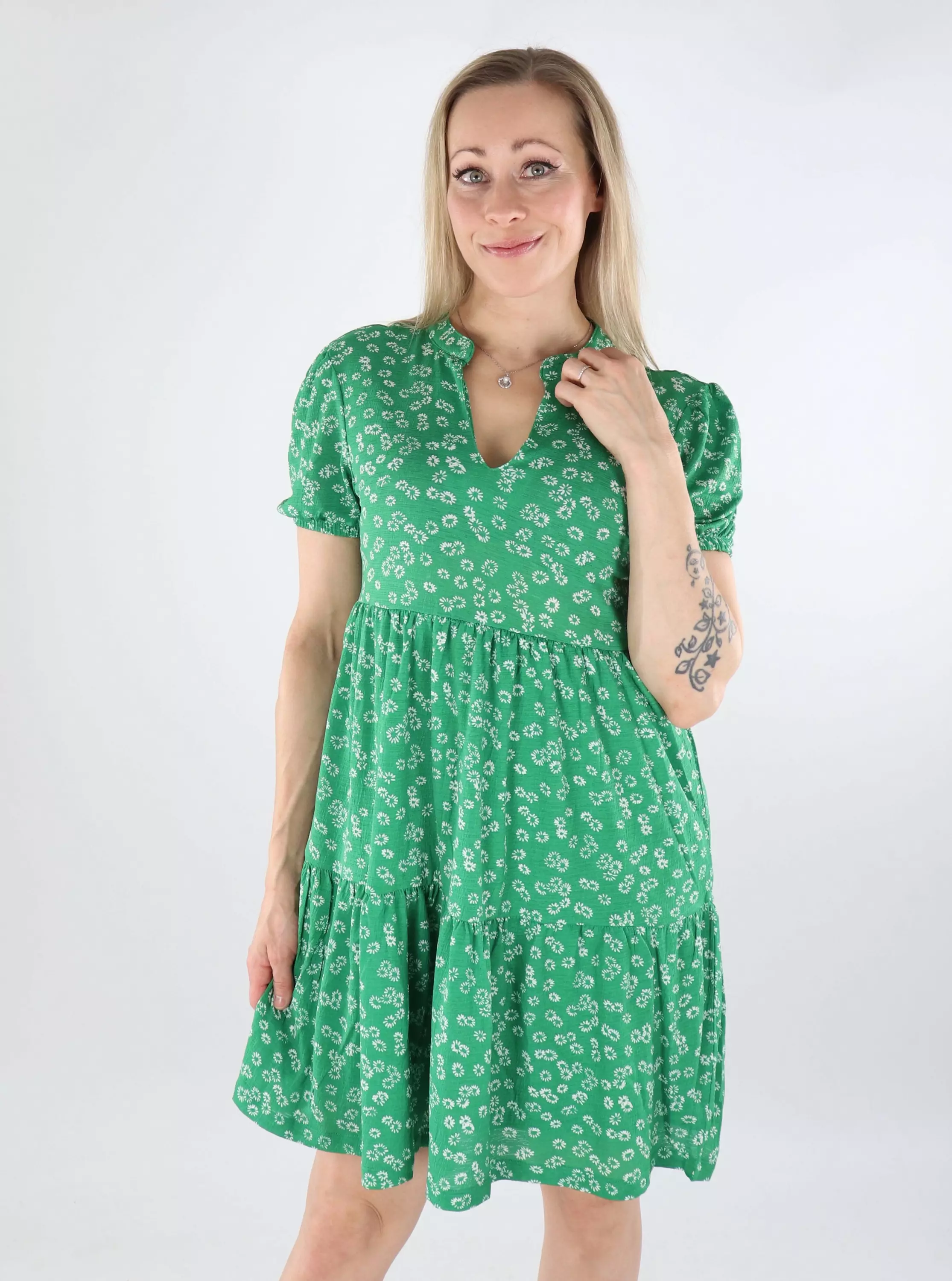 JDY kort klänning V-Neck medium green/cloud dancer