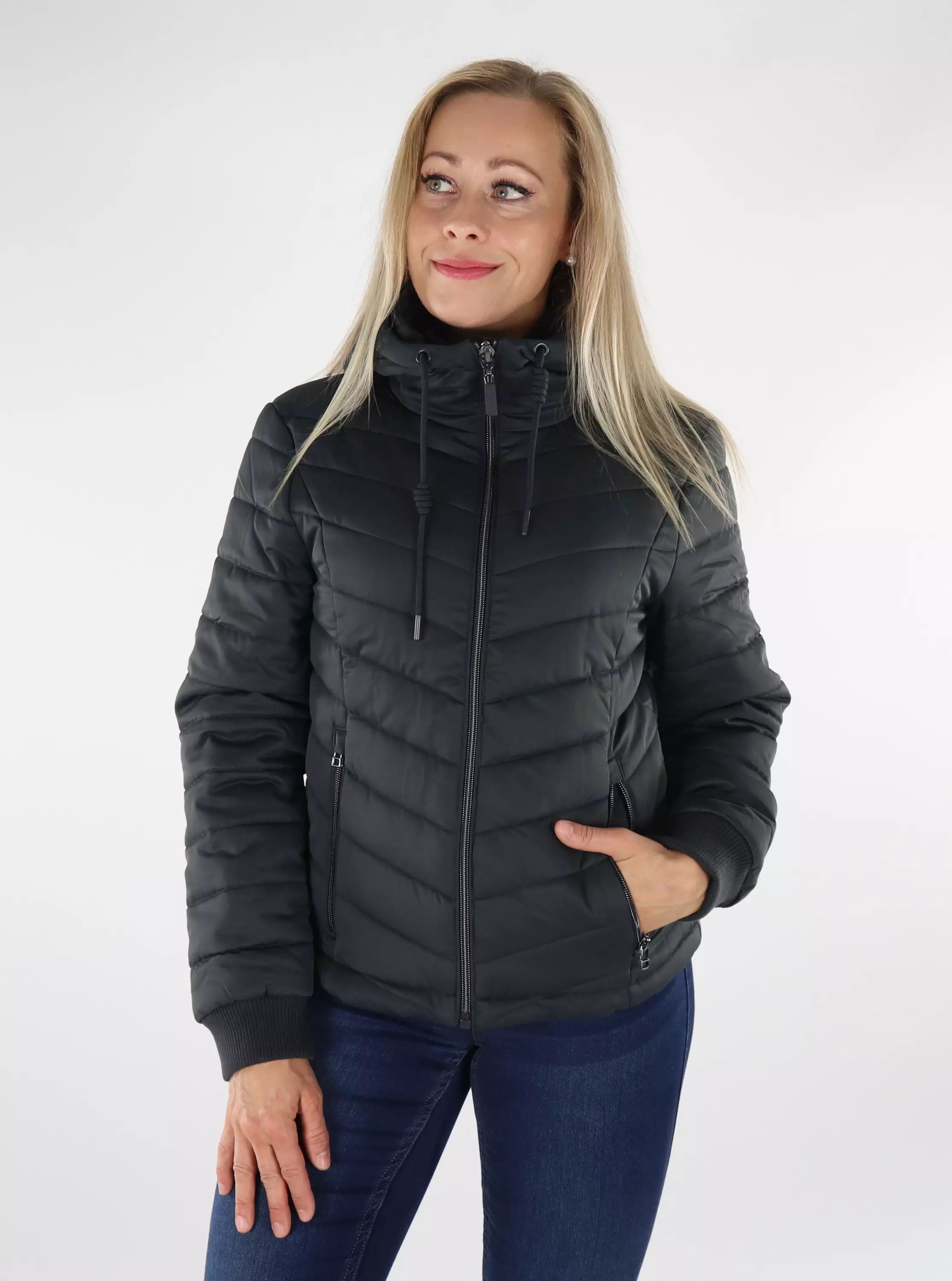JDY Lätt quiltad jacka huva svart