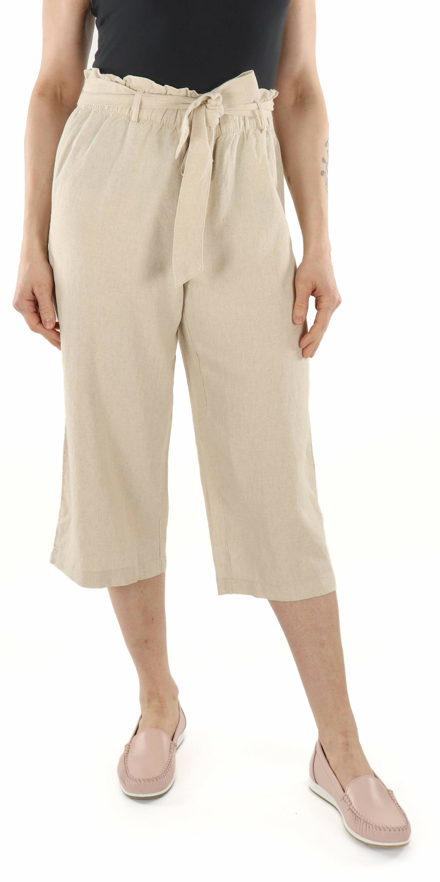 Croppade byxor i linneblandning med ett bälte som kan knytas i midjan. Perfekt för varma sommardagar!