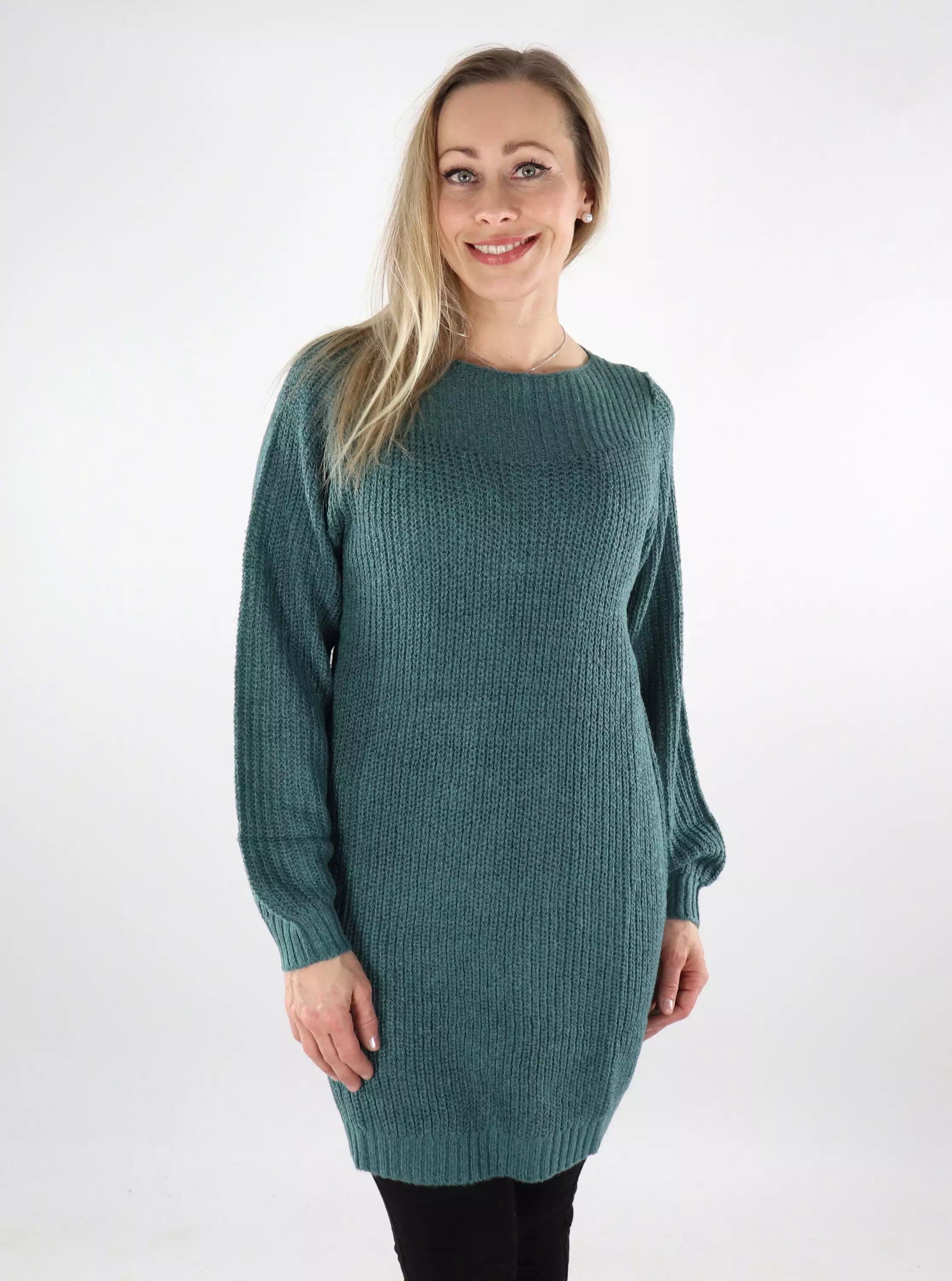 En vacker stickad klänning med båthals och avslappnade ärmar.