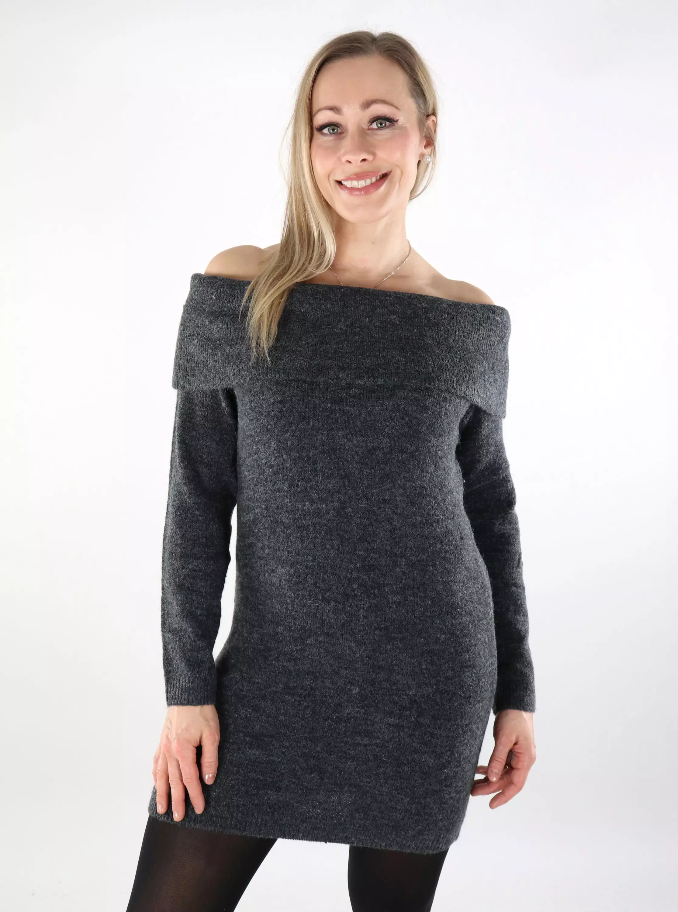 Mjuk och varm stickad klänning med off-shoulder urringning.