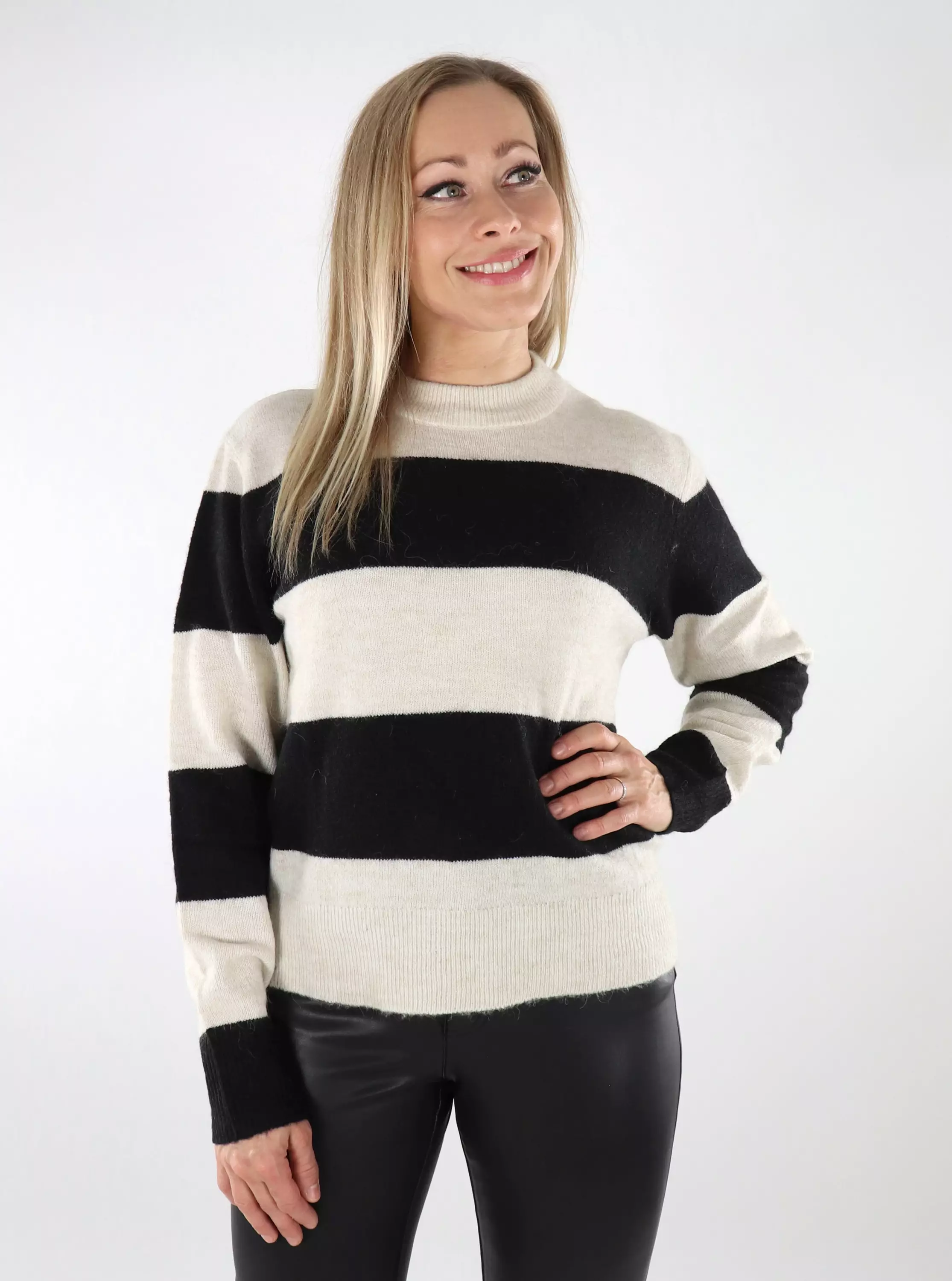 Trendig randig stickning med alpackaull. Bekväm, lätt stickad, så den passar till exempel bra för vinterlager!