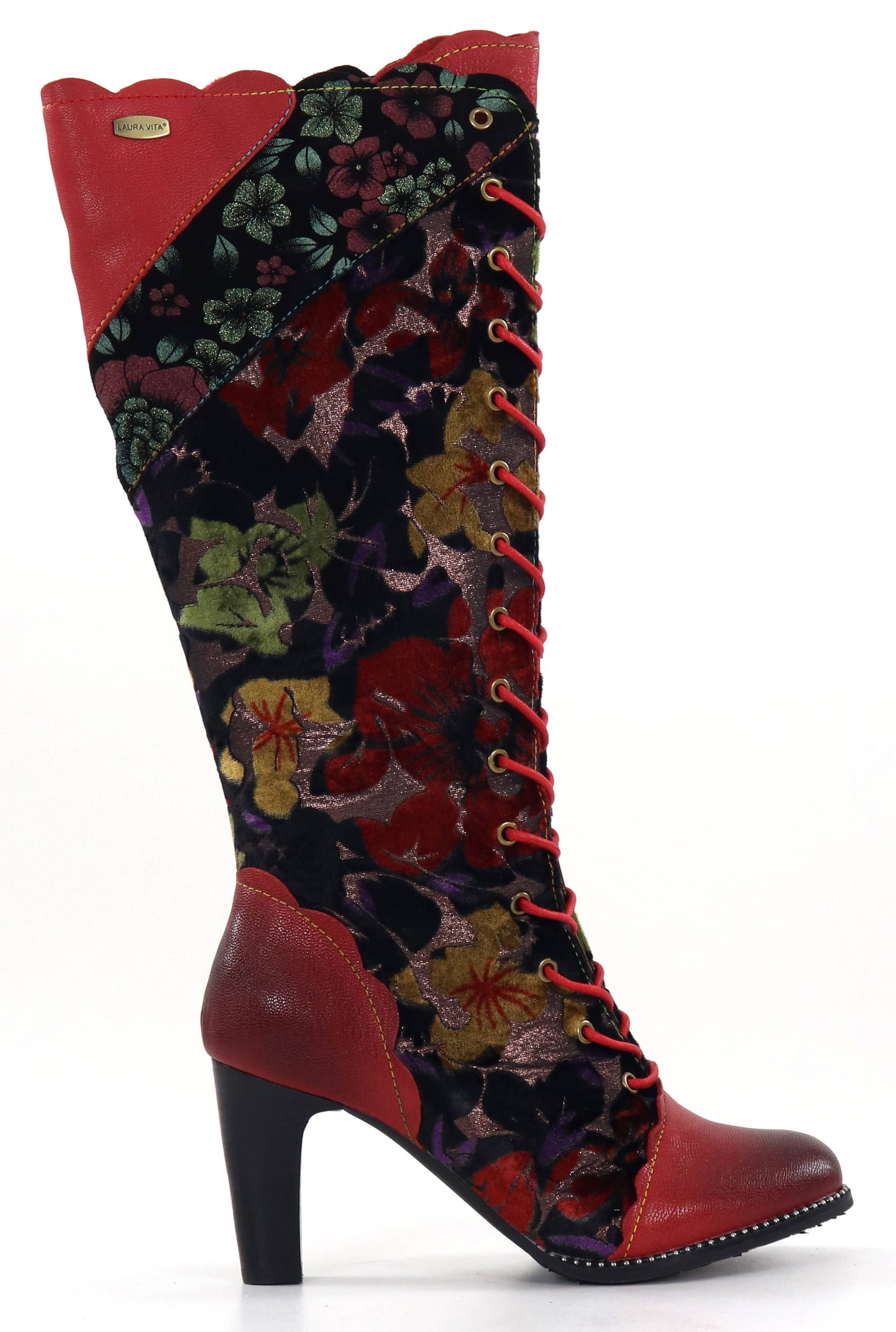 Snygga Laura Vita läderstövlar. Vackert präglat textilmönster, med gnistrande detaljer.