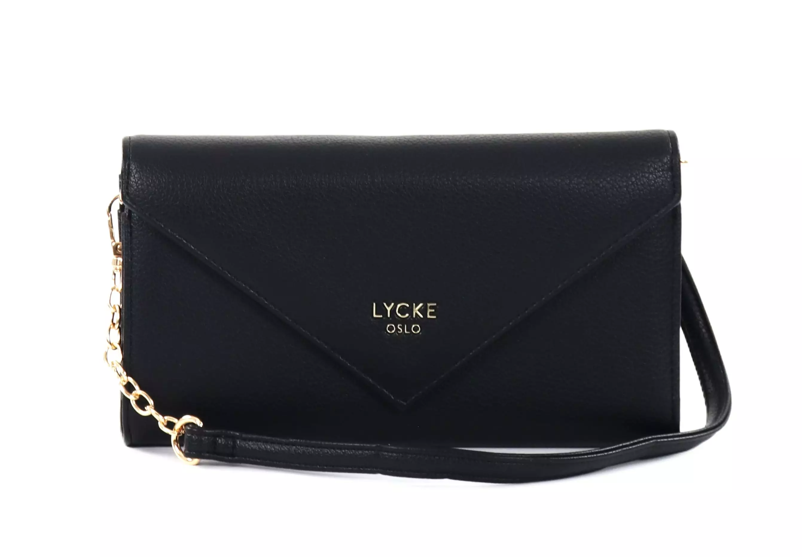 En kompakt axelväska med snygga gulddetaljer. Väskan fungerar även bra som clutch eller plånbok!