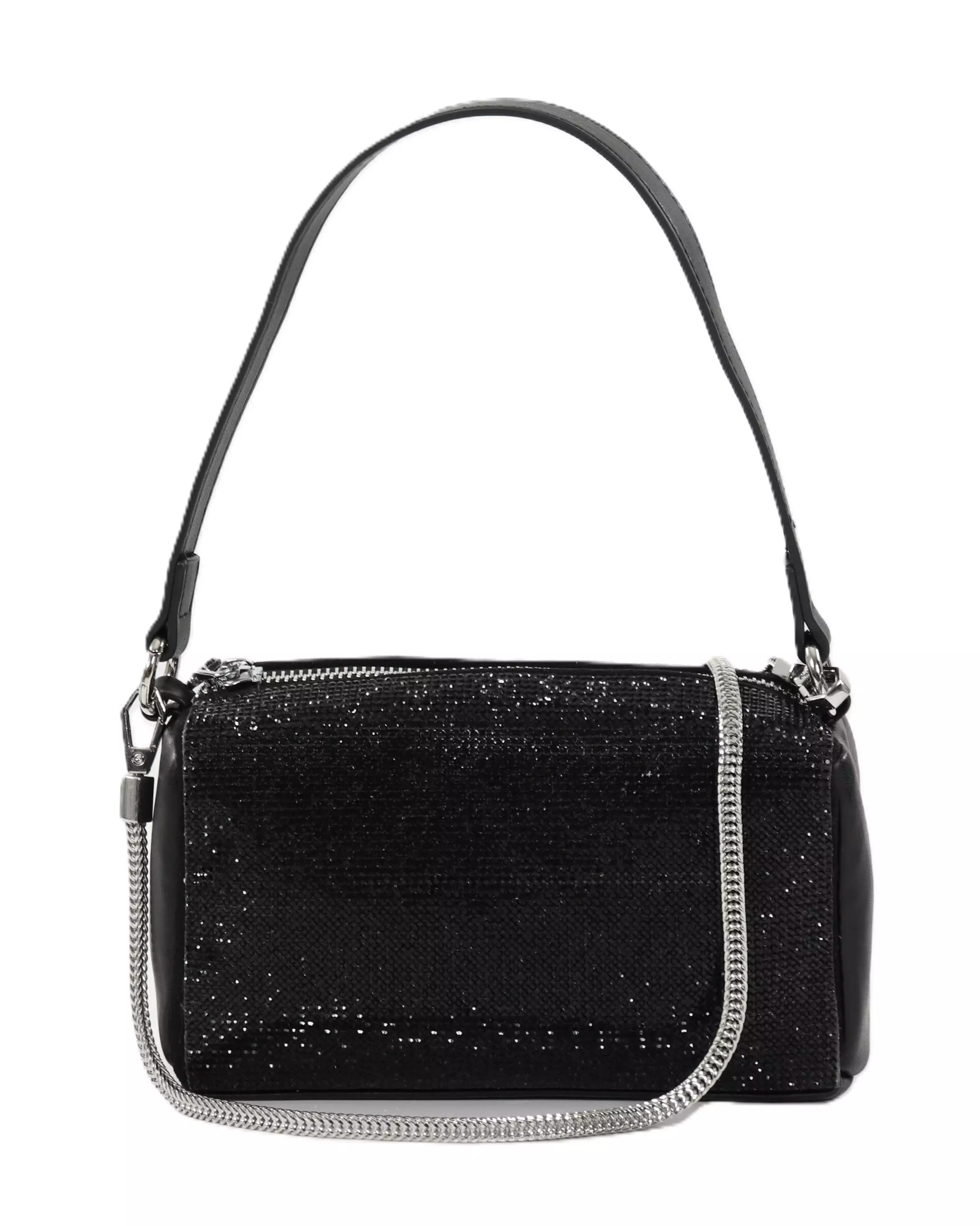 En kompakt och iögonfallande glitterväska fulländar din feststil. Två axelremmar – korta och långa – erbjuder mångsidiga bäralternativ beroende på tillfälle. Inuti finns två kortfickor som förvarar dina viktigaste kort utan en separat plånbok.