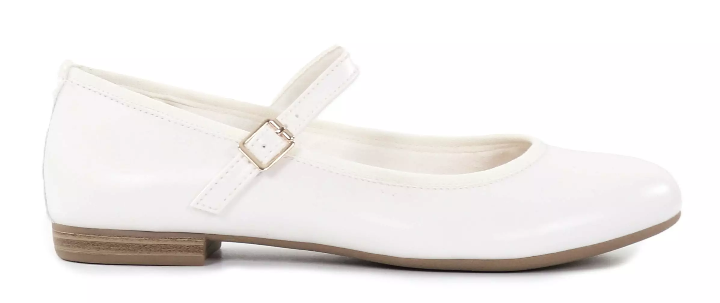 Firande vita ballerinor med guldspänne. De vadderade innersulorna på skorna garanterar komfort hela dagen!