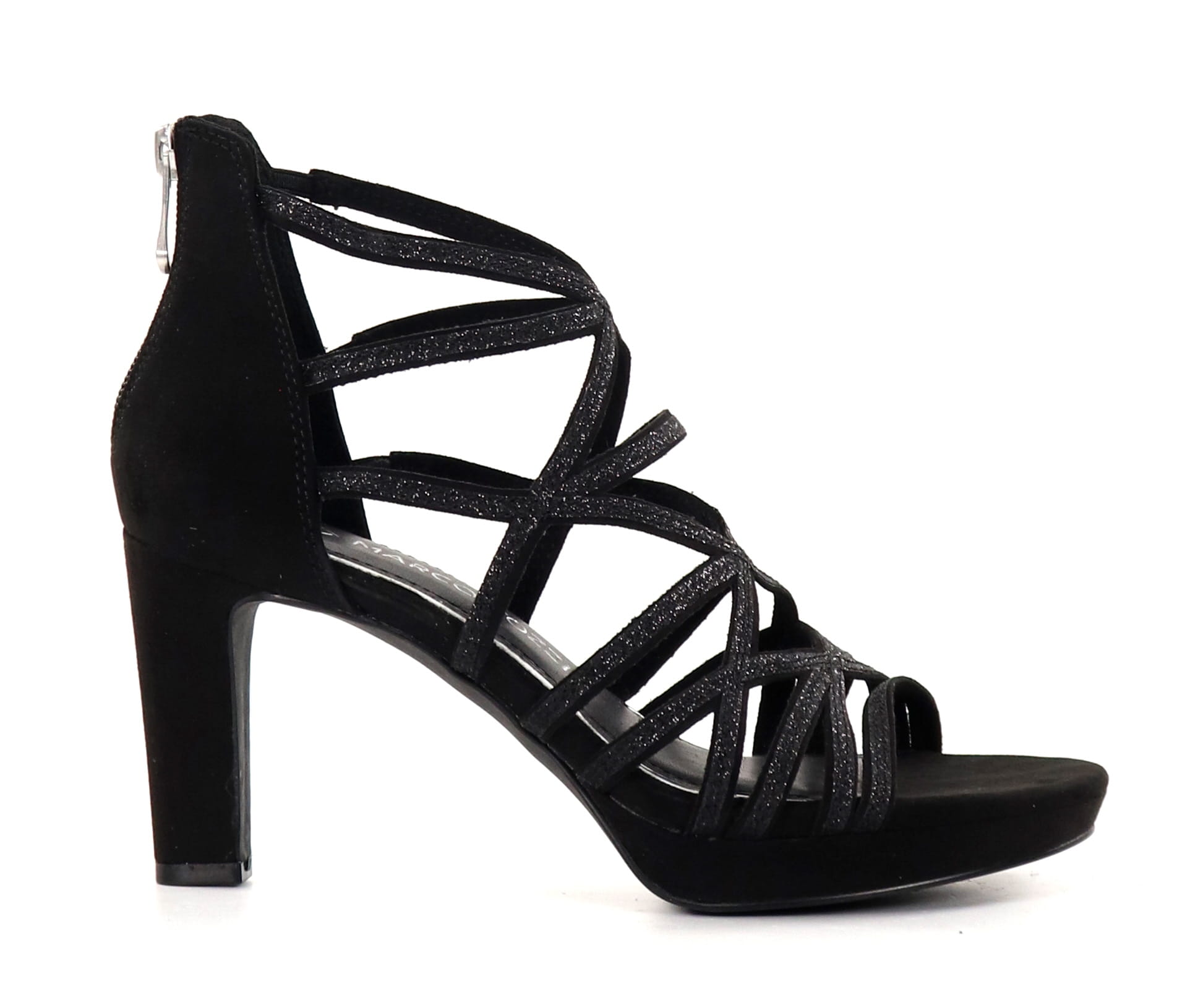 Vackra höga klackar med remmar, med gnistrande glitter.