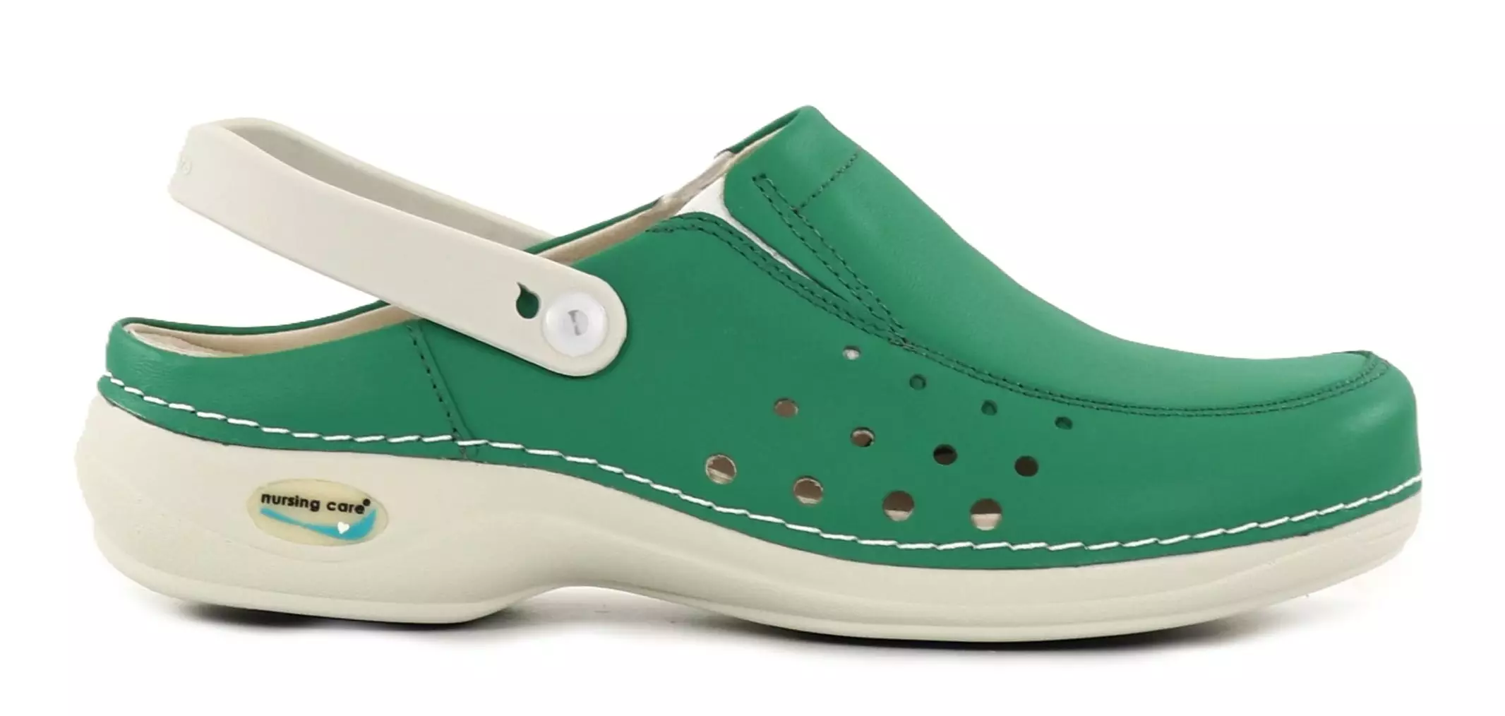 Maskintvättbara arbetsskor i äkta läder för vårdpersonal WG4AP06 Grön