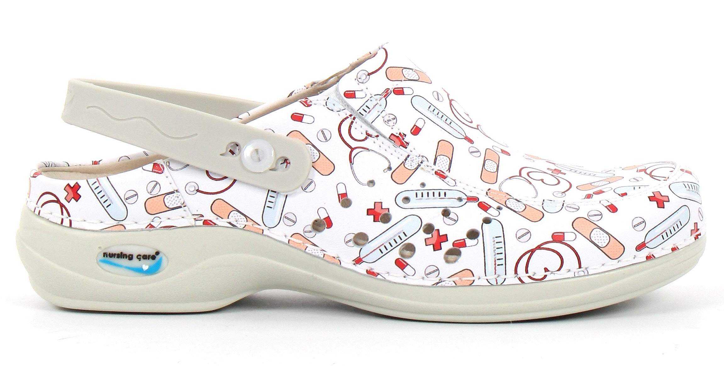 Arbetsskorna har justerbar hälrem. Klackhöjden ca 3 cm.