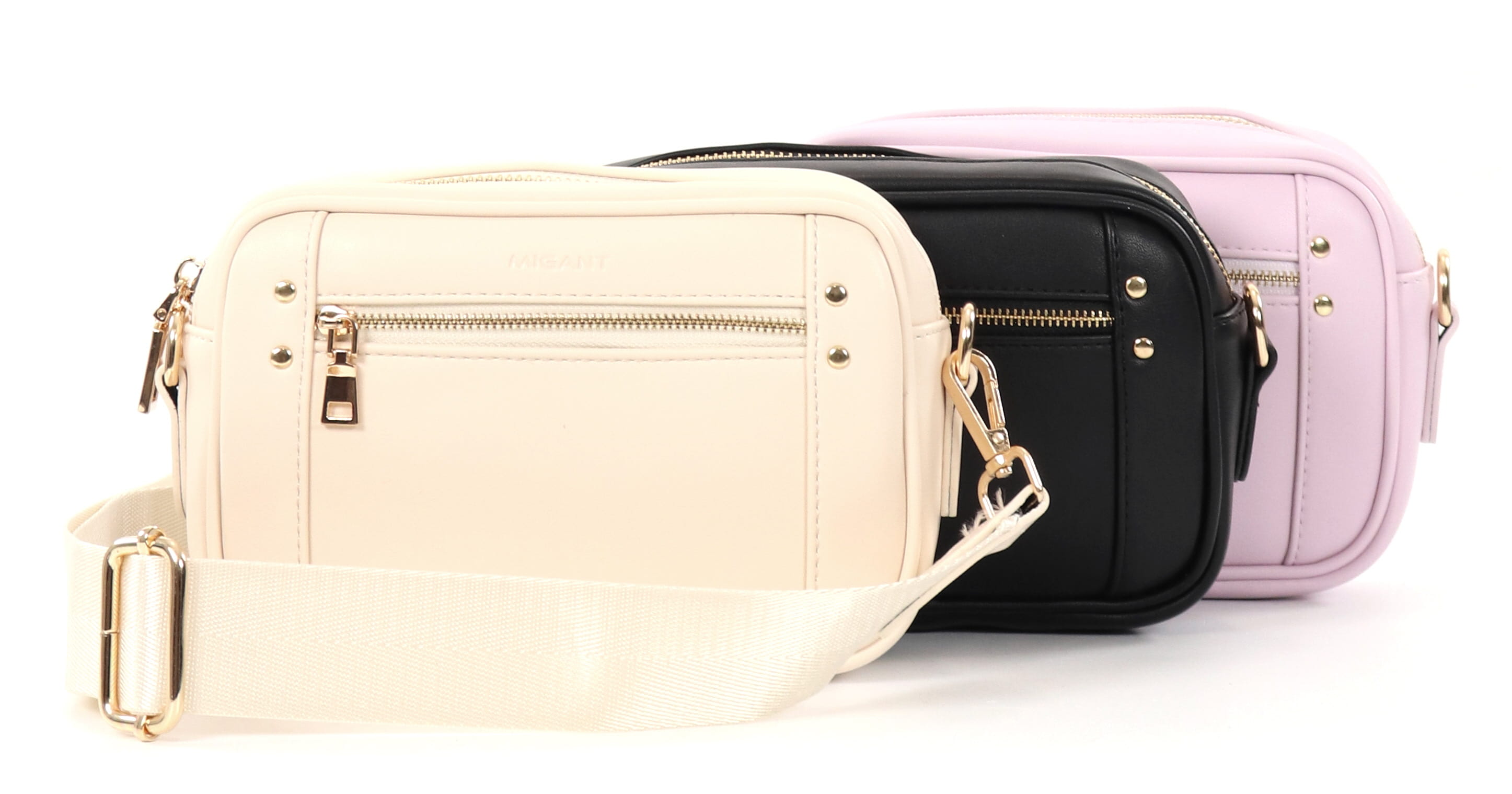 Migants axelväska med en tunn syntetläderrem och en bred textilrem.