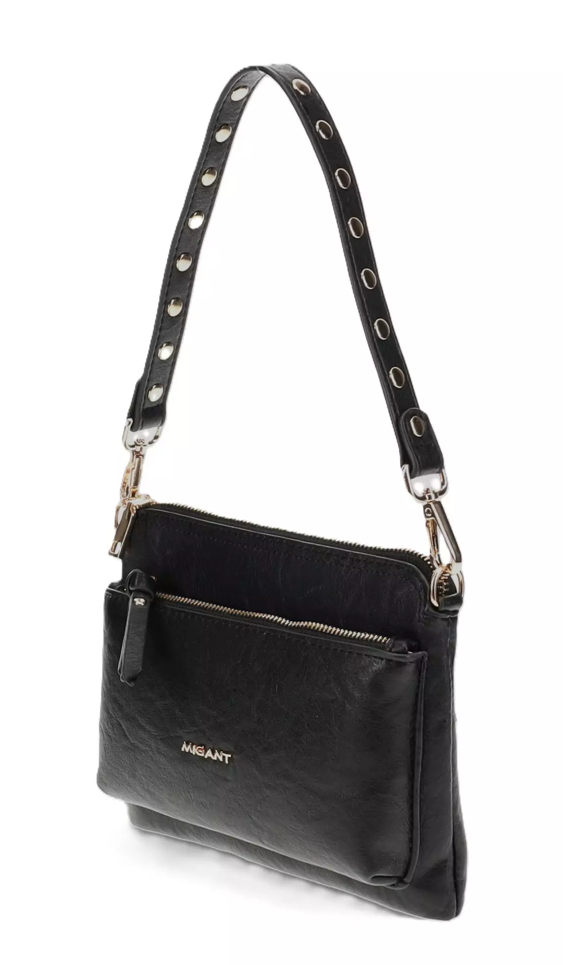 Denna Migant axelväska kombinerar stil och praktiskhet! Två avtagbara remmar möjliggör mångsidig användning i vardagen och på språng. Flera fickor med dragkedja håller dina tillhörigheter organiserade, och de vackra gulddetaljerna kompletterar den trendiga looken.